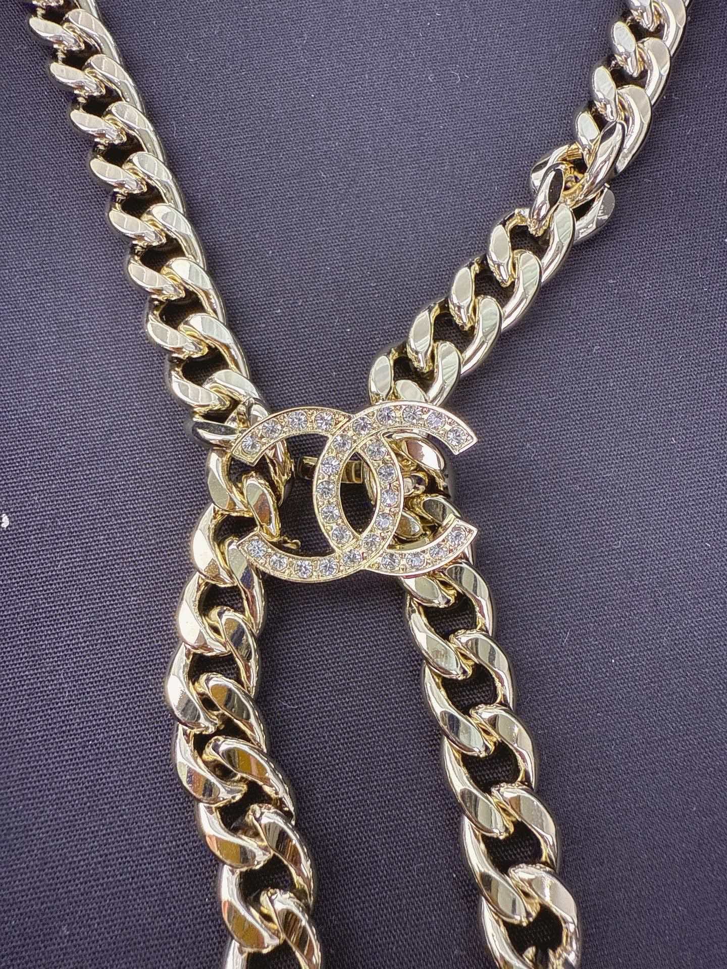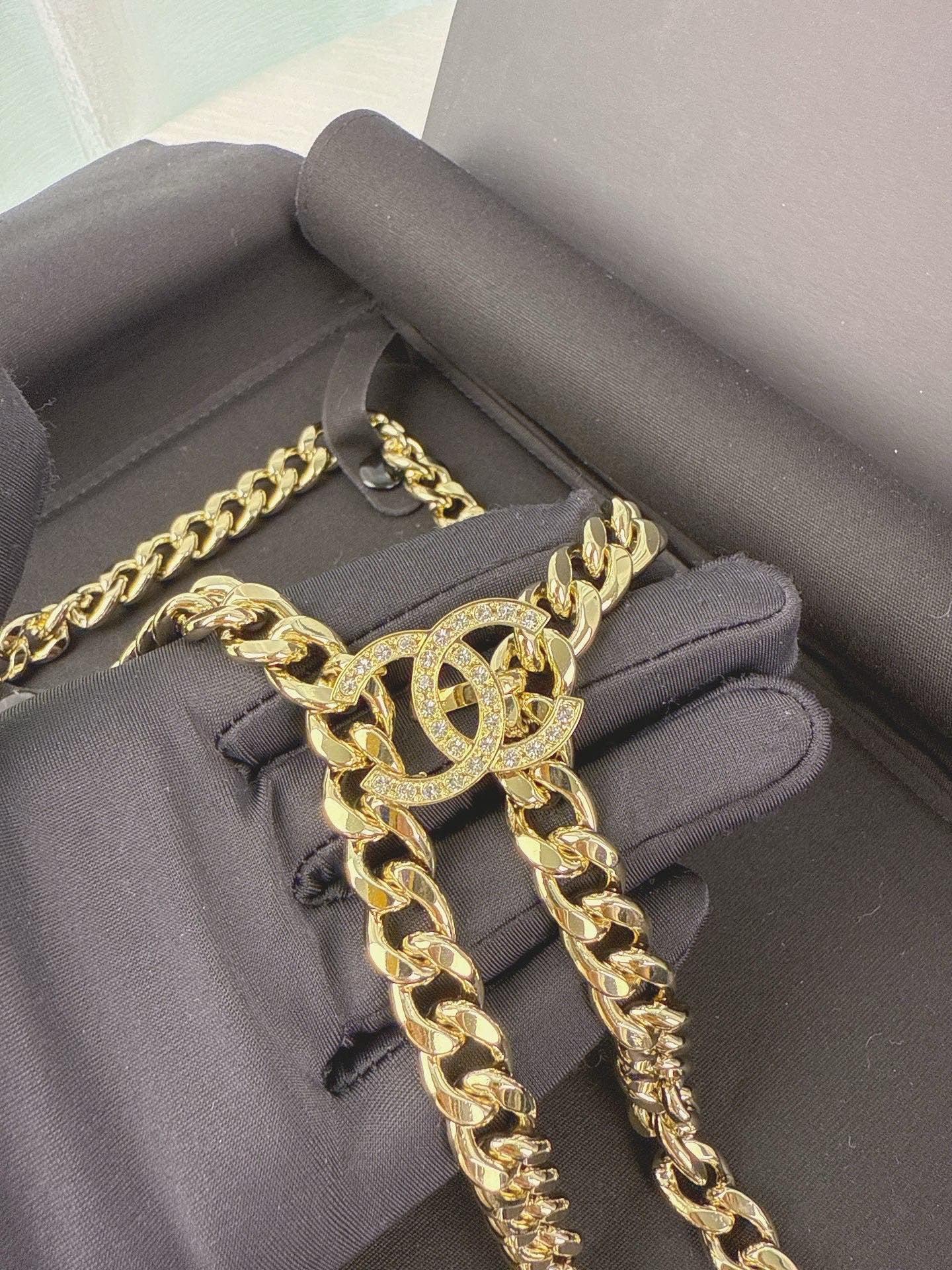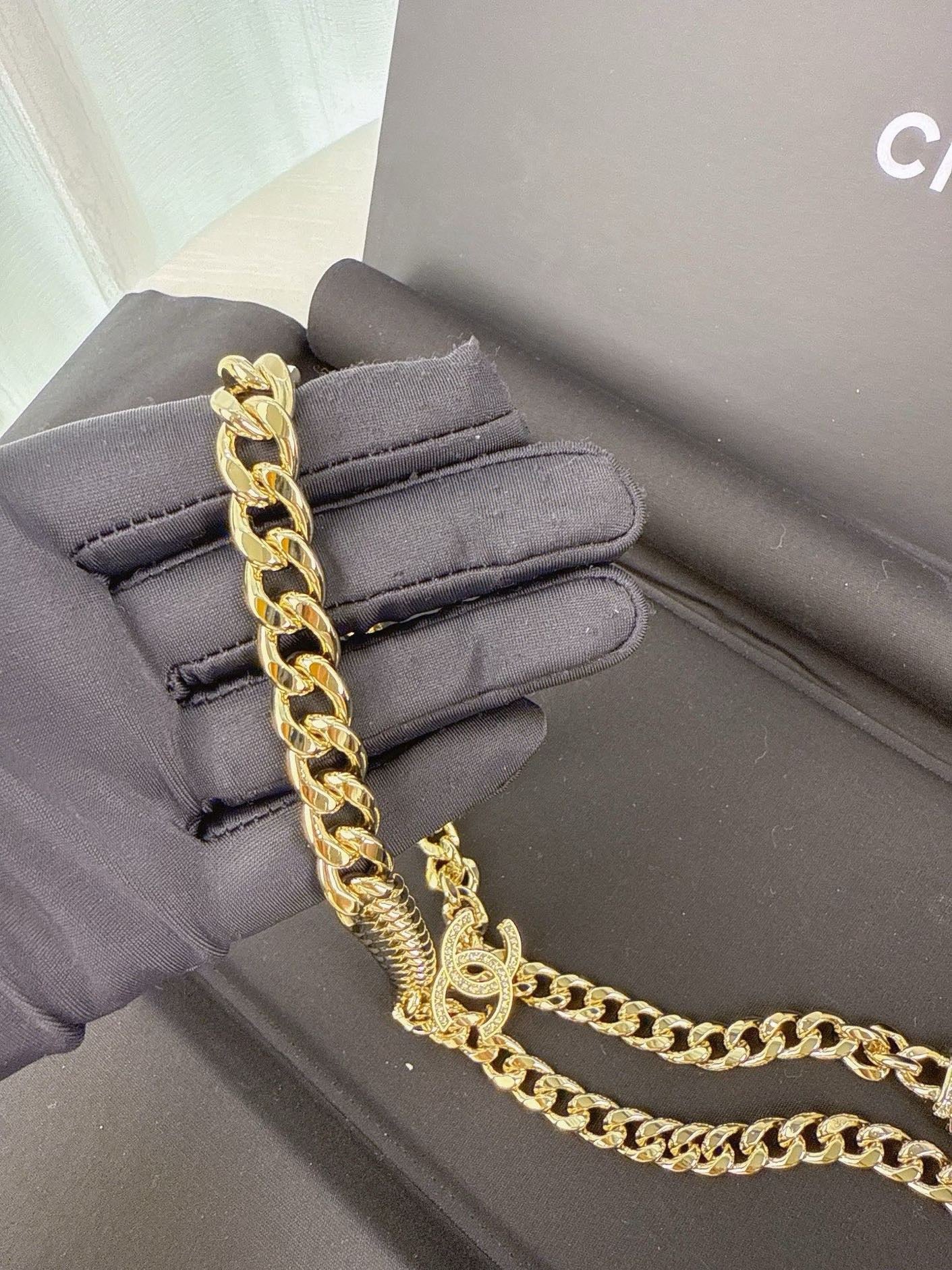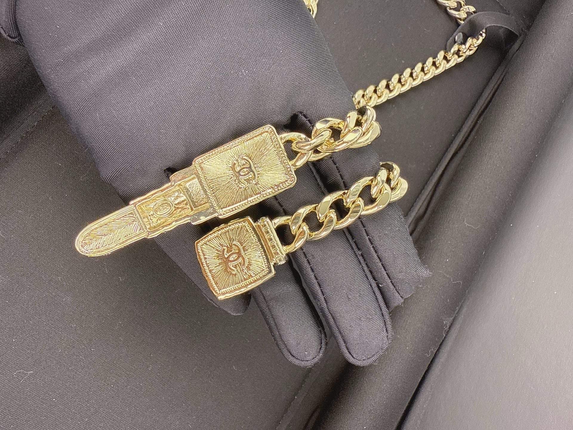 這款 CHANEL 頸鏈設計靈感源自品牌標誌性紅唇與香水瓶元素,以金色金屬搭配琺瑯工藝精緻製成,造型別緻亮眼,極具收藏價值與時尚魅力,是為造型增添趣味與辨識度的完美飾品。
