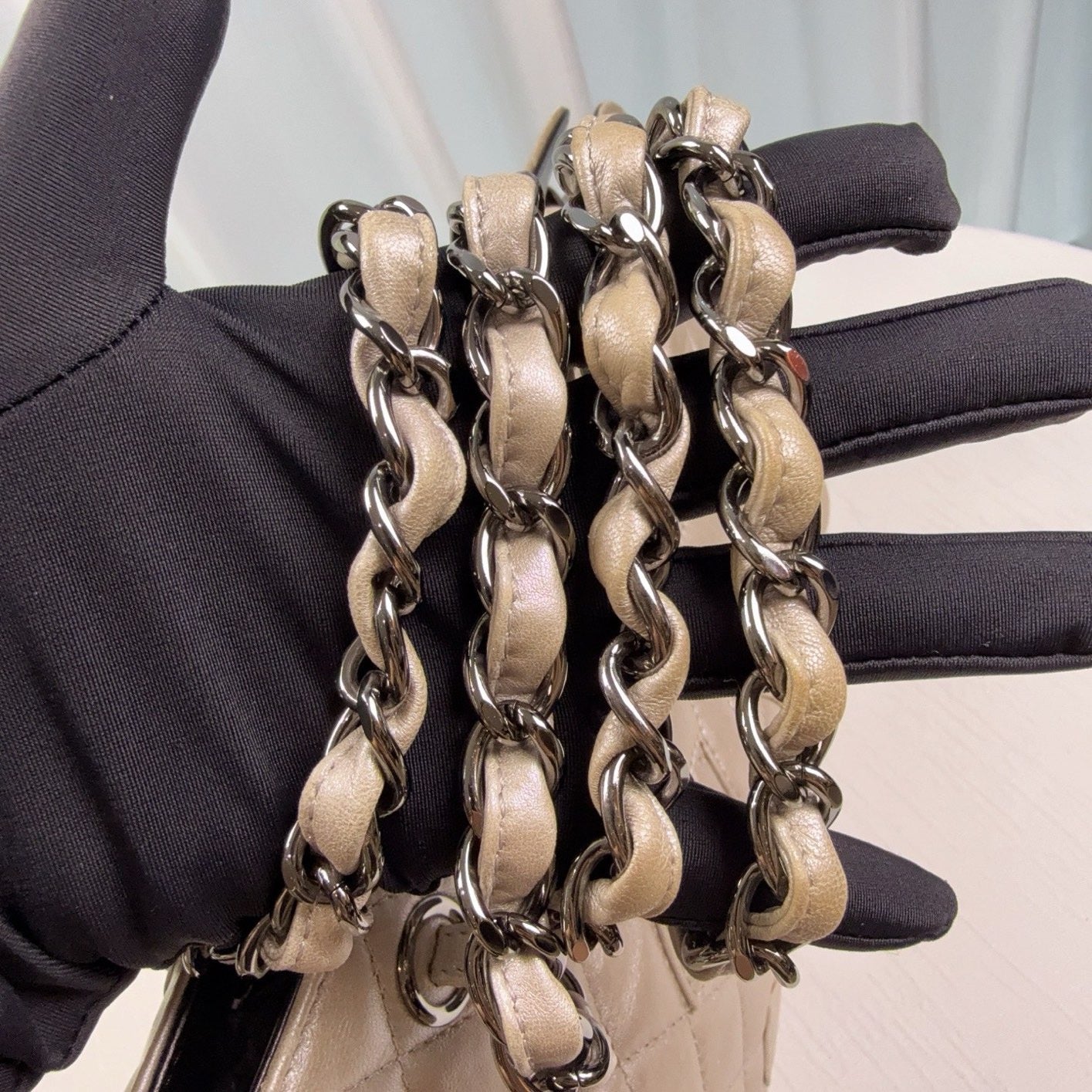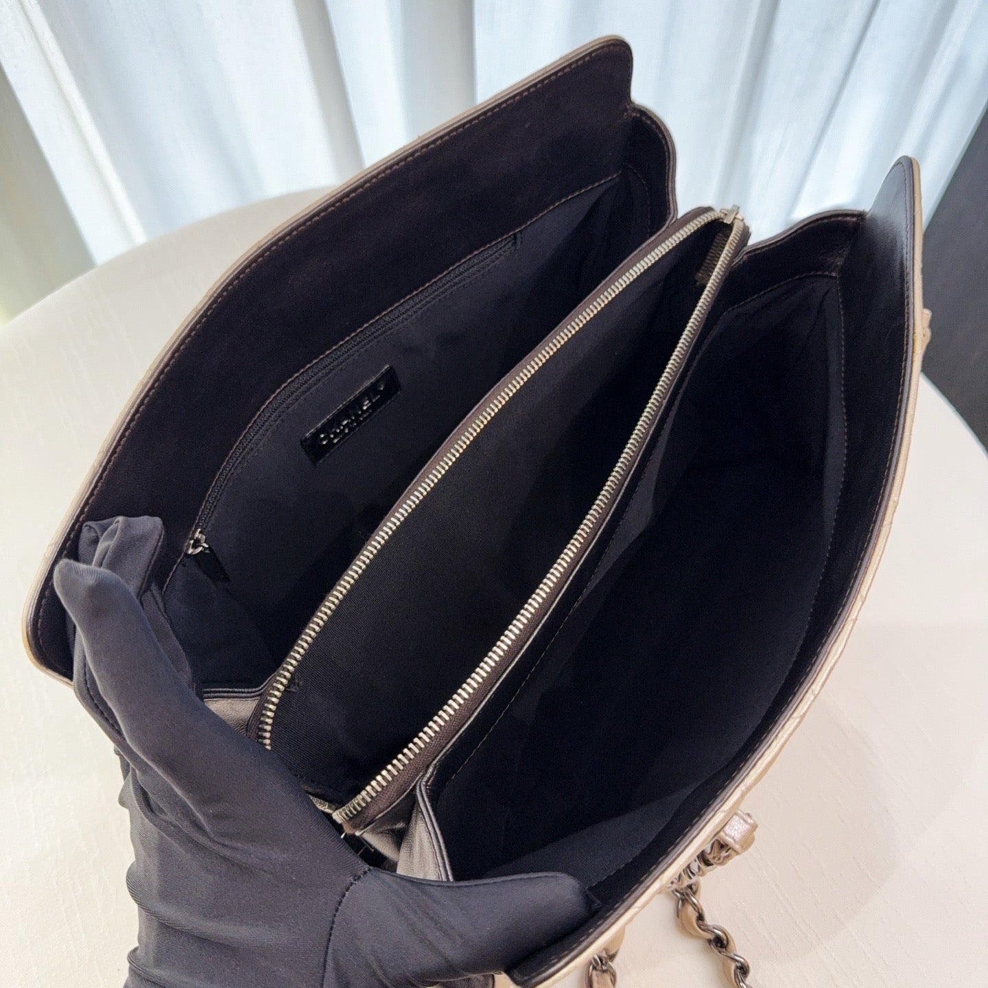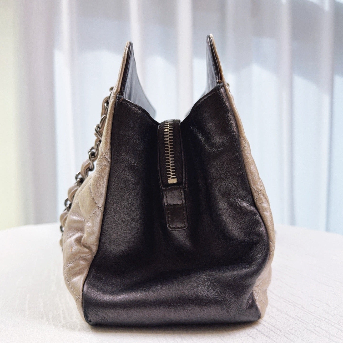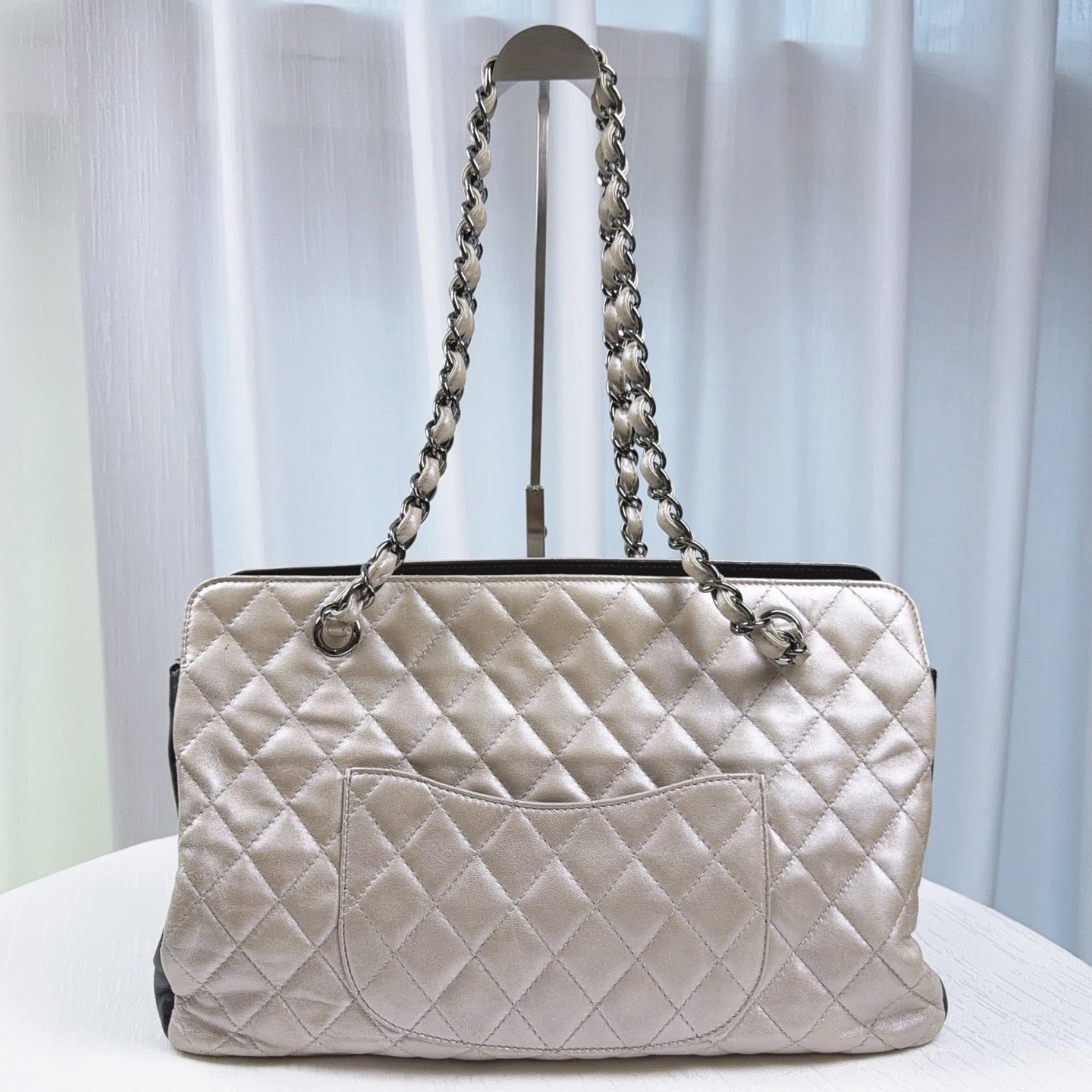 這款經典 CHANEL GST 中號手提包以少見的黑白拼色(俗稱熊貓配色)呈現,選用耐用的荔枝紋牛皮搭配銀色金屬配件,容量大又不失挺拔線條感,適合日常通勤與精緻造型。這款配色極其稀有,收藏價值與實用性兼備,是香奈兒手袋中的不敗經典。