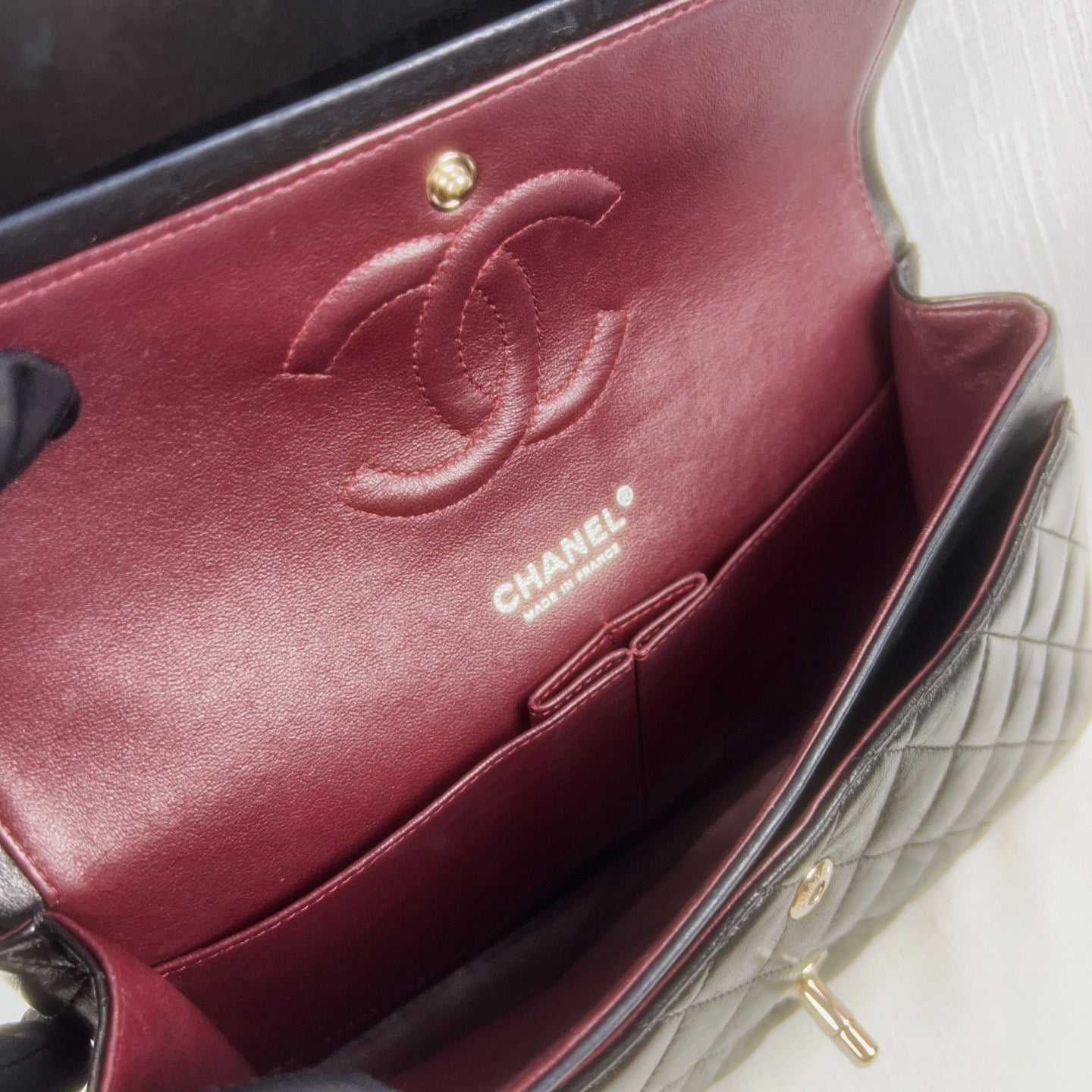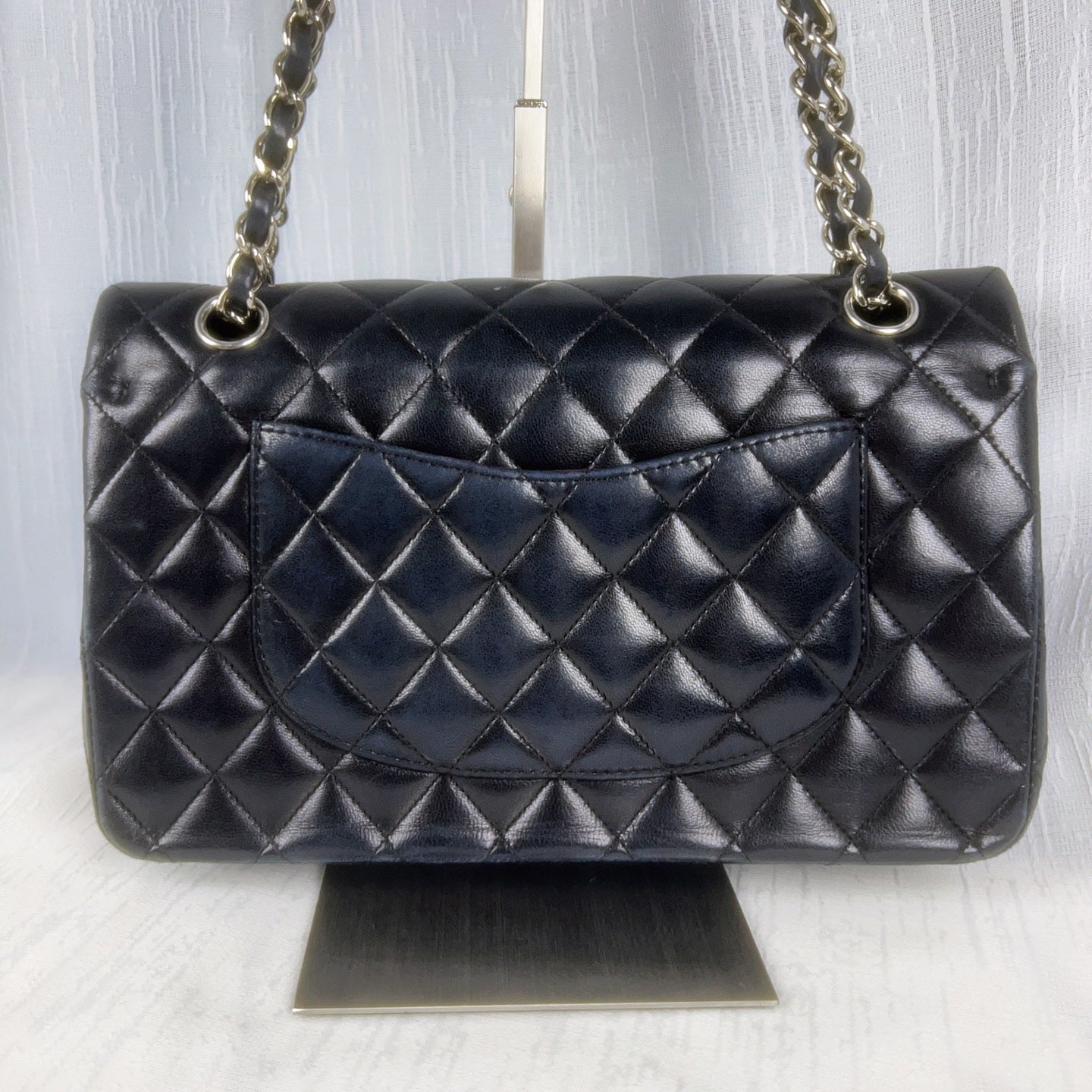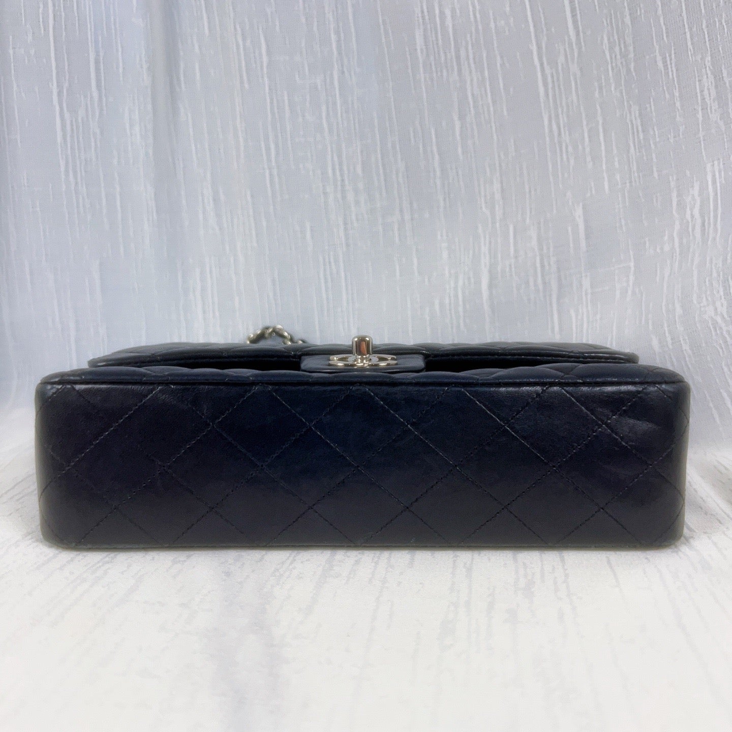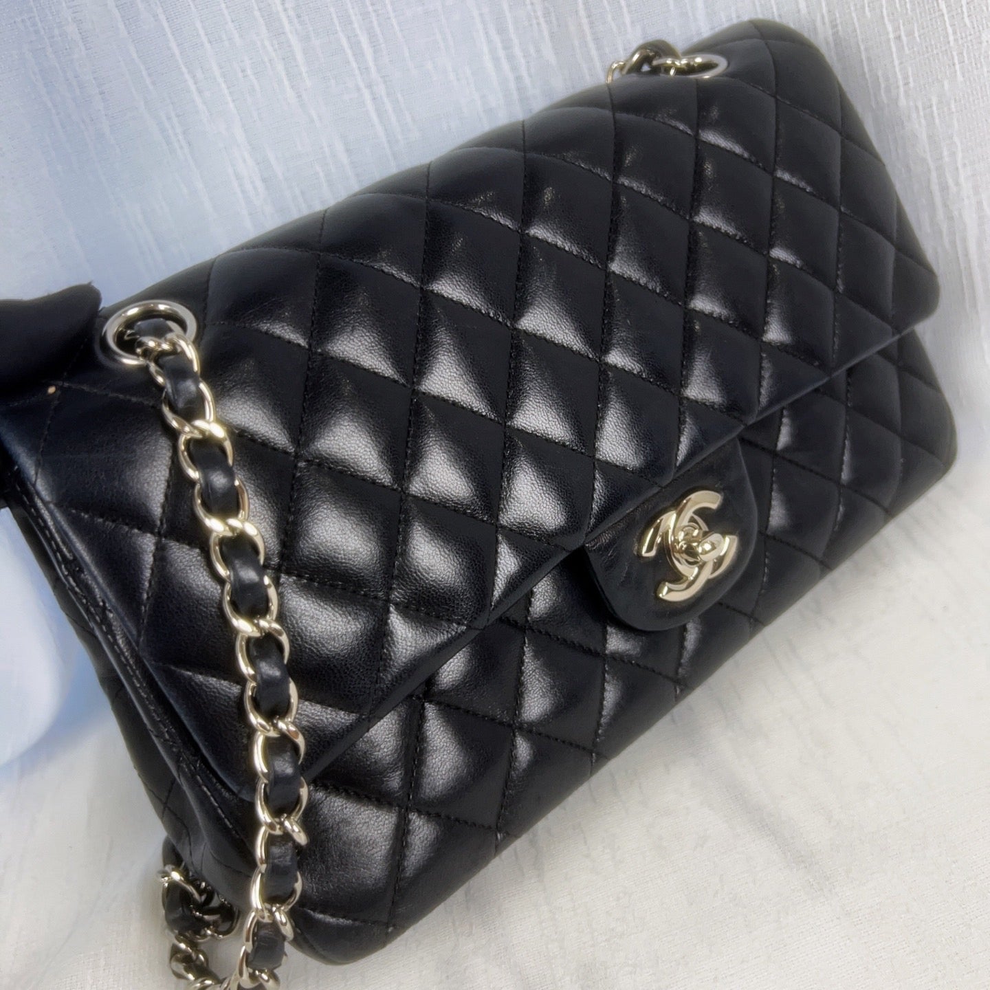 98% NEW - CHANEL Classic Flap Black Lambskin with Silver Hardware Medium Size 25 x 7 x 16 cm