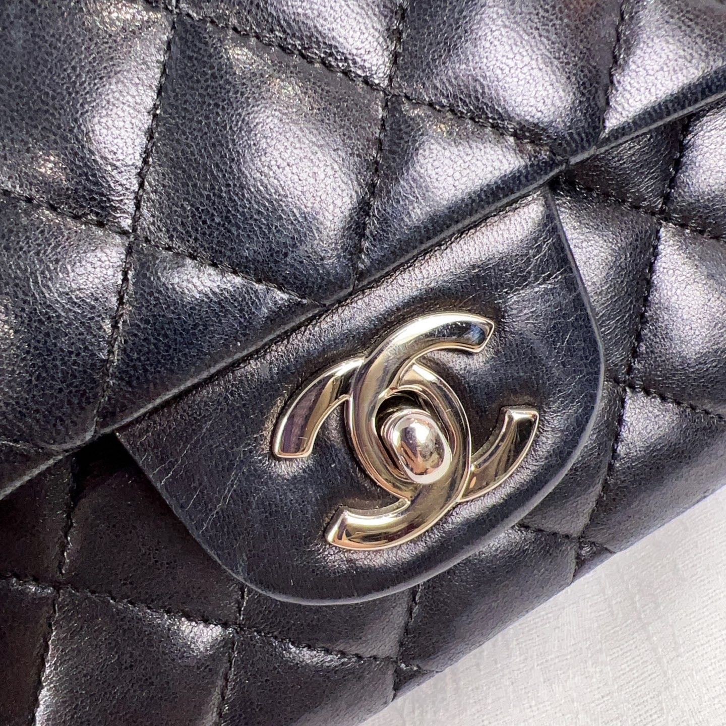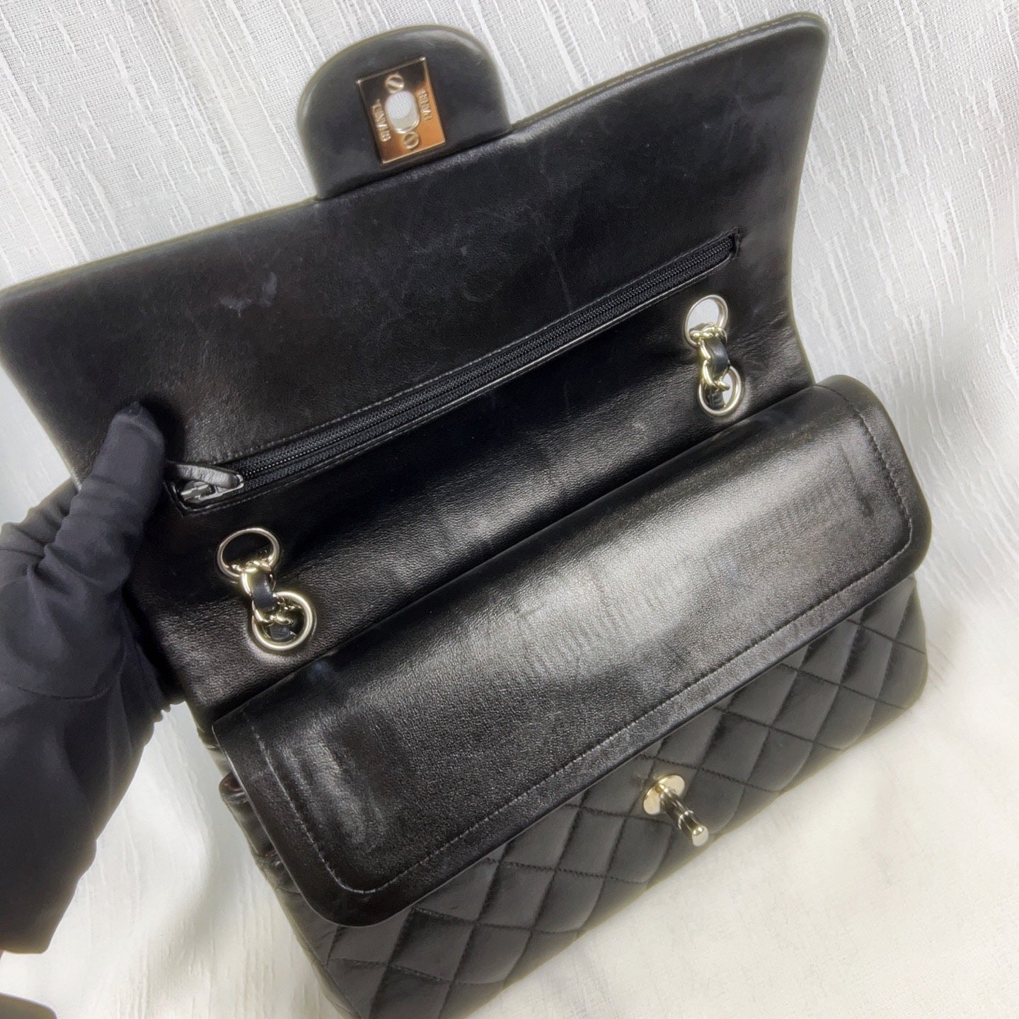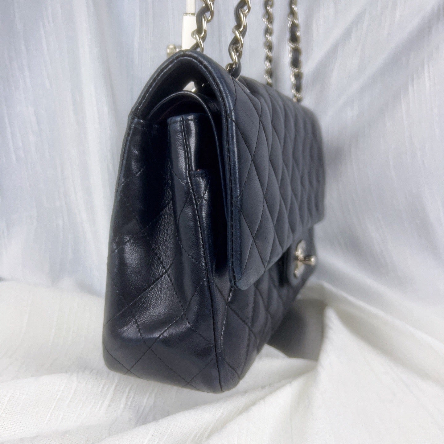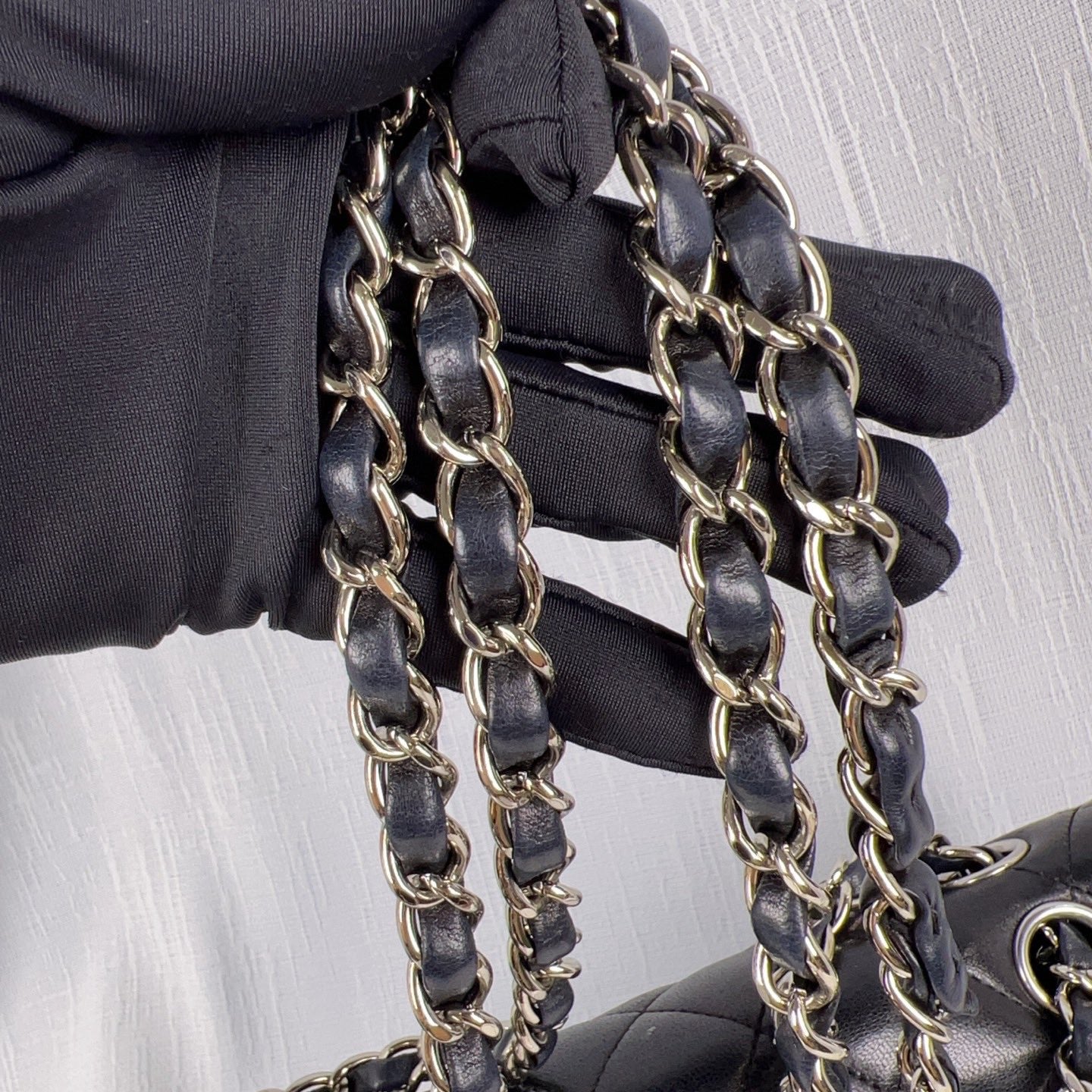 98% NEW - CHANEL Classic Flap Black Lambskin with Silver Hardware Medium Size 25 x 7 x 16 cm