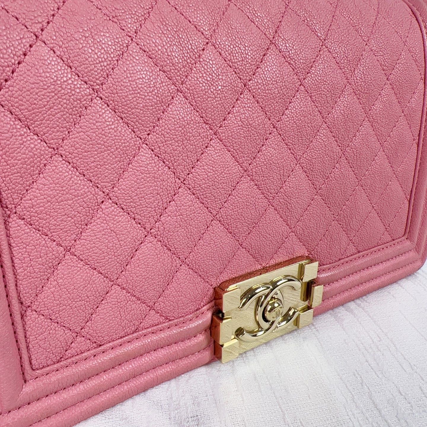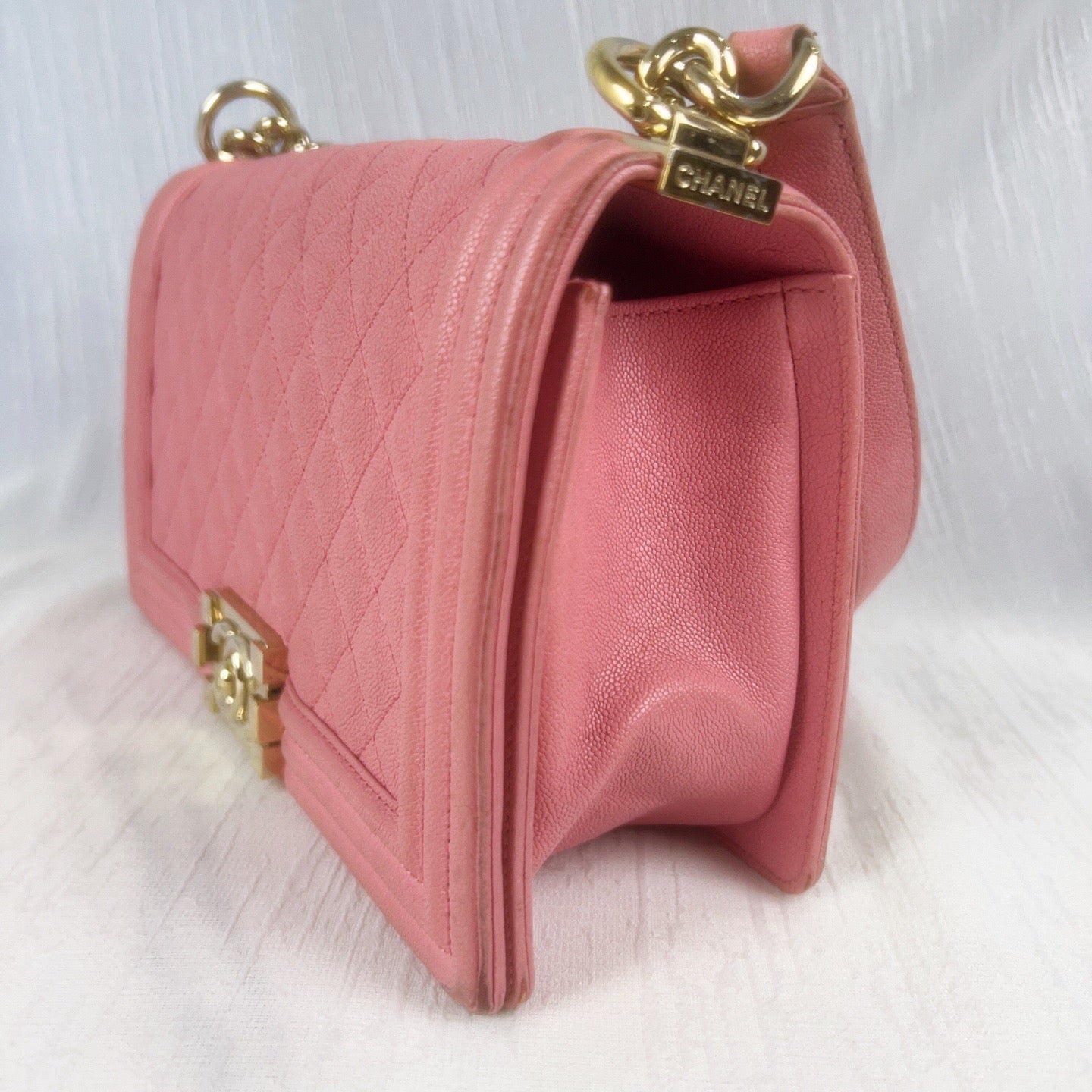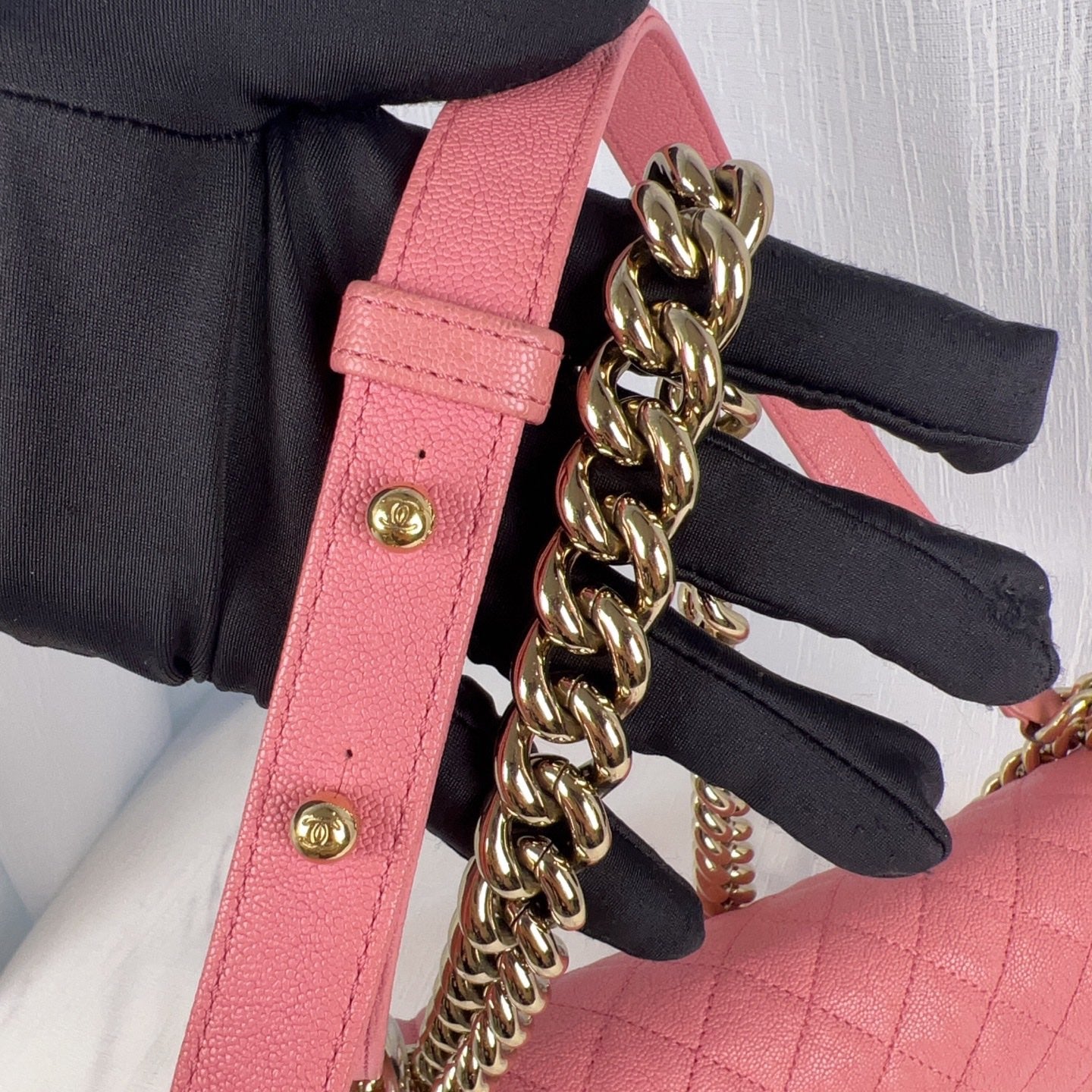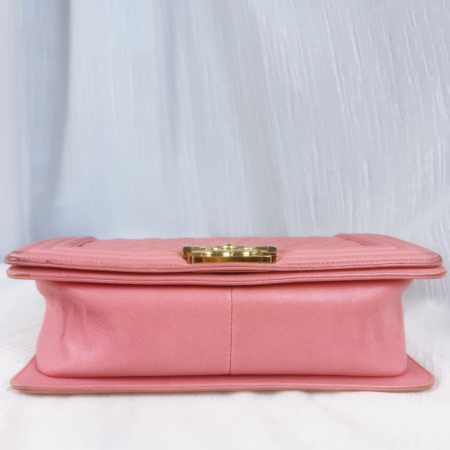 98% NEW - CHANEL Le Boy Medium Pink Caviar Leather with Gold Hardware Shoulder Bag