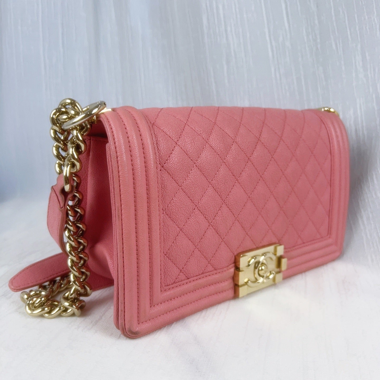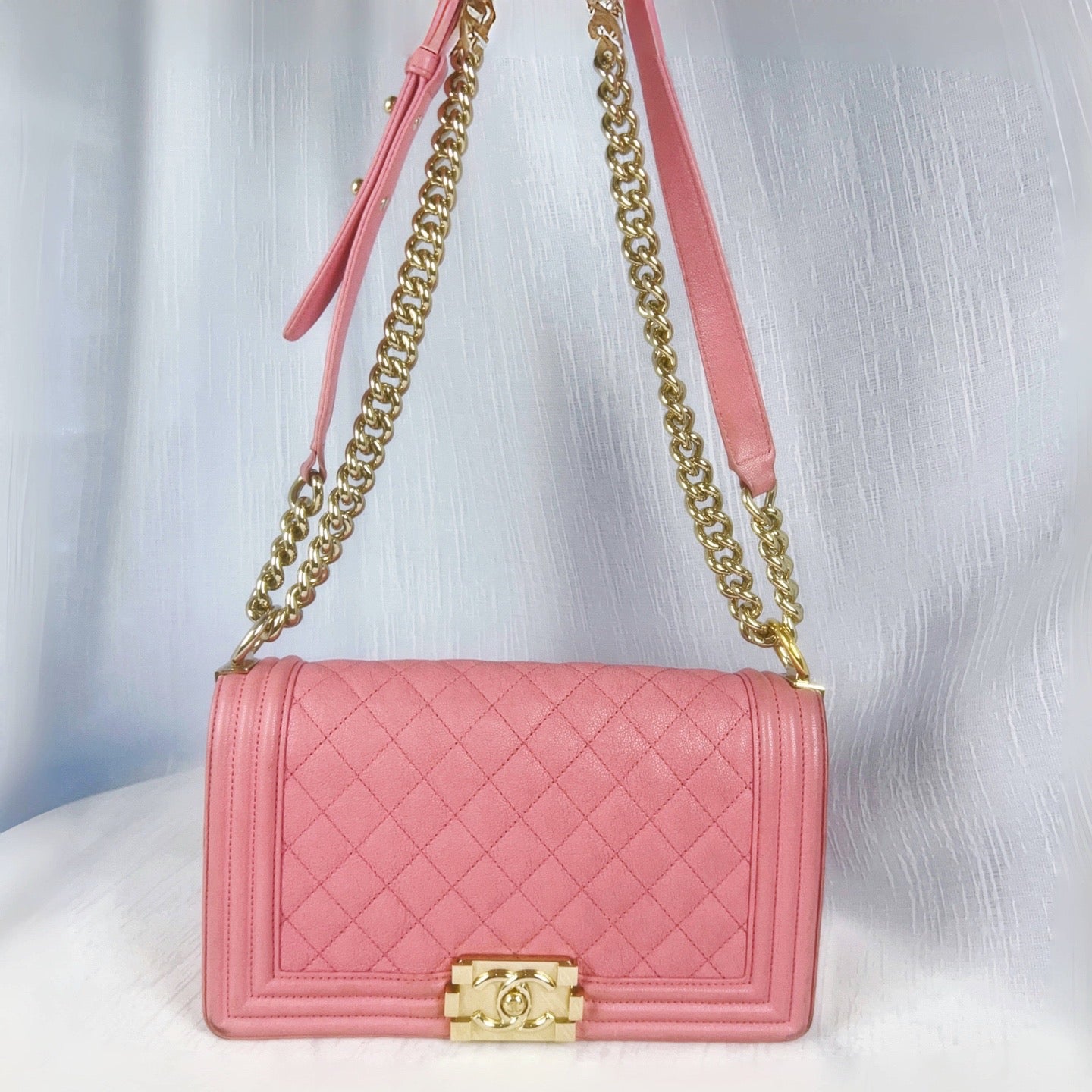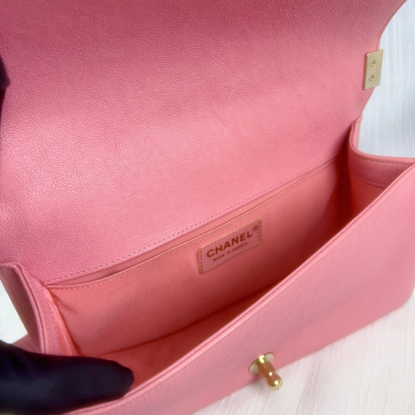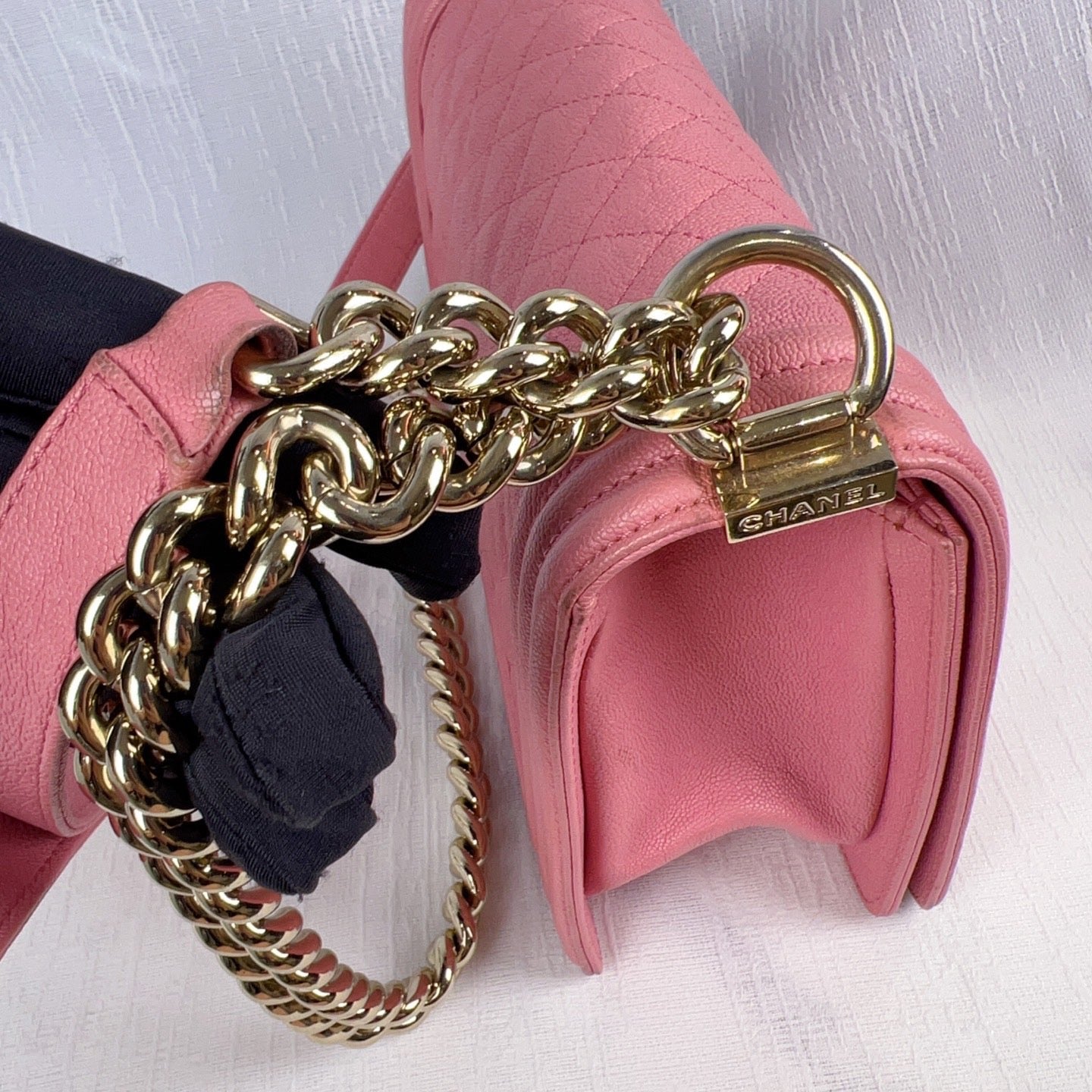 98% NEW - CHANEL Le Boy Medium Pink Caviar Leather with Gold Hardware Shoulder Bag