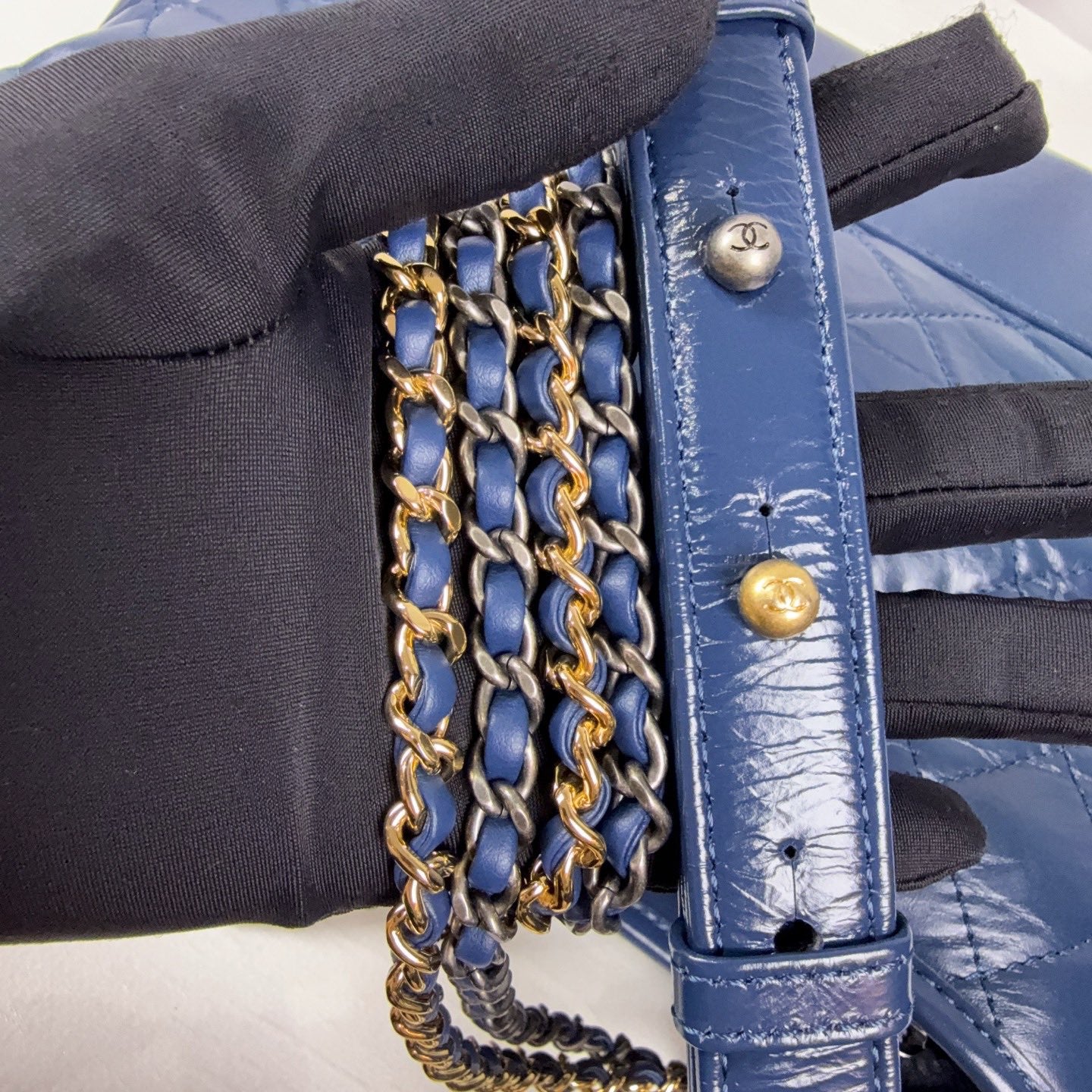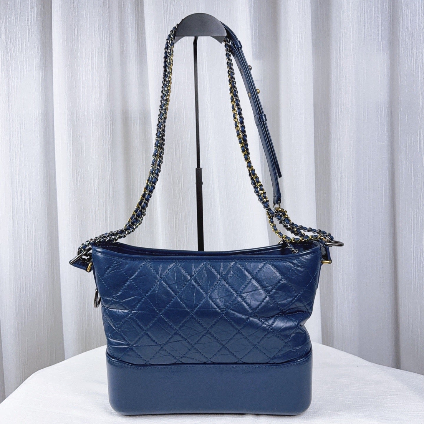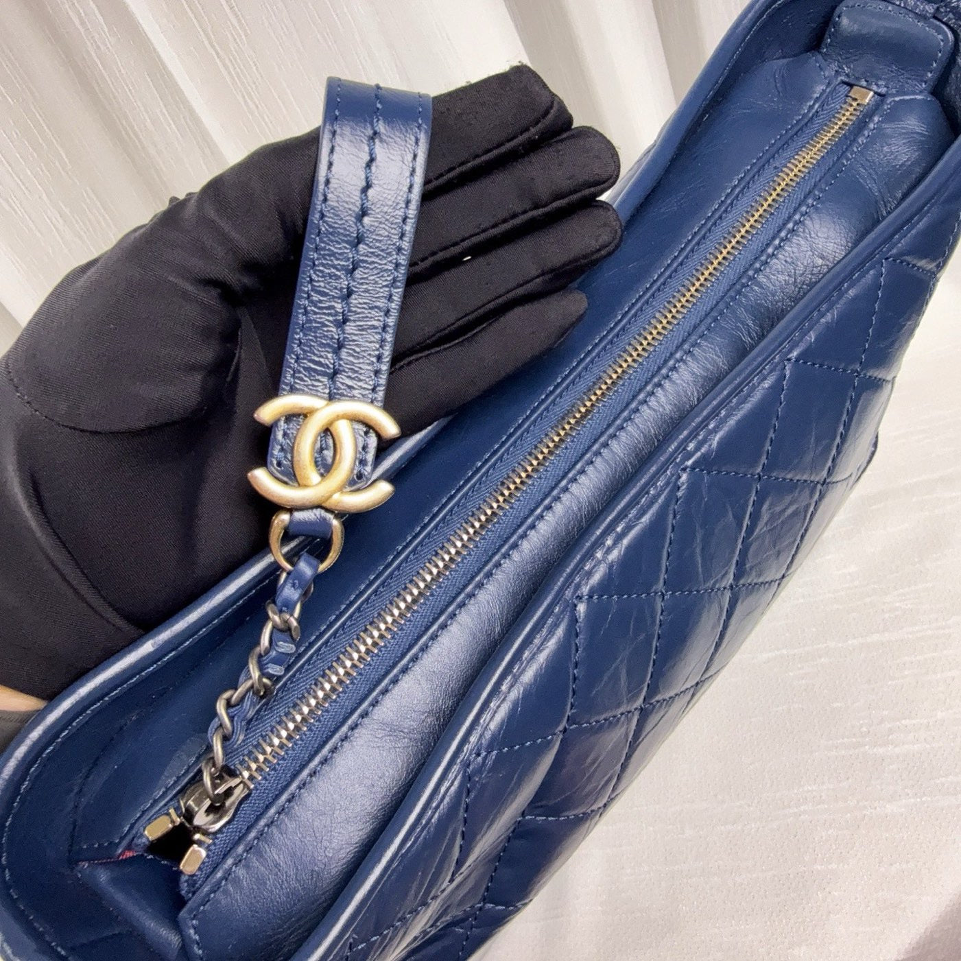 這款 CHANEL Gabrielle 中號流浪包以仿舊小牛皮打造,搭配經典金銀雙色鏈條,結構俐落、容量出眾,是香奈兒中罕見兼具個性與實用的大容量款式。不論男女皆可駕馭,氣場十足,絕對是實背與收藏的首選。