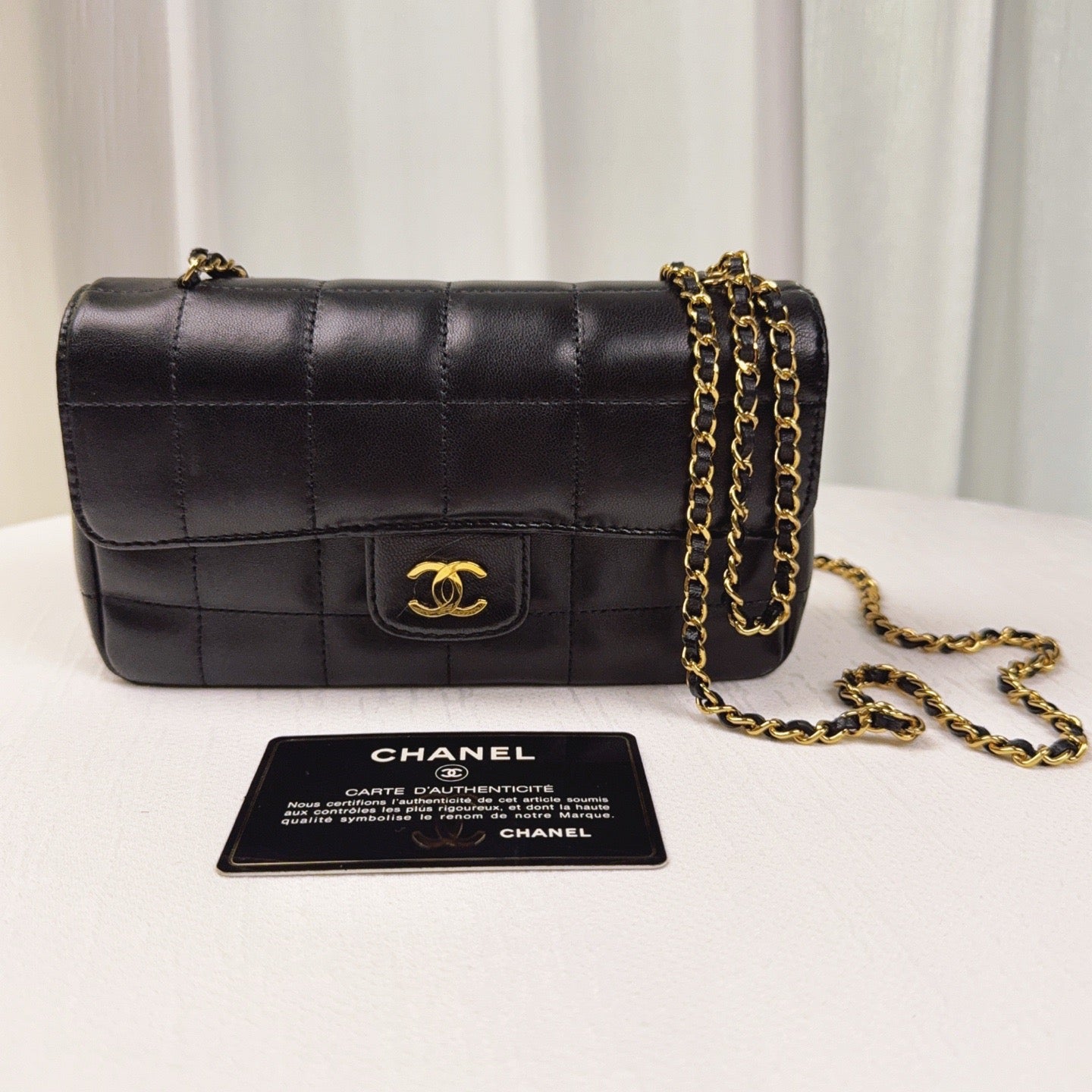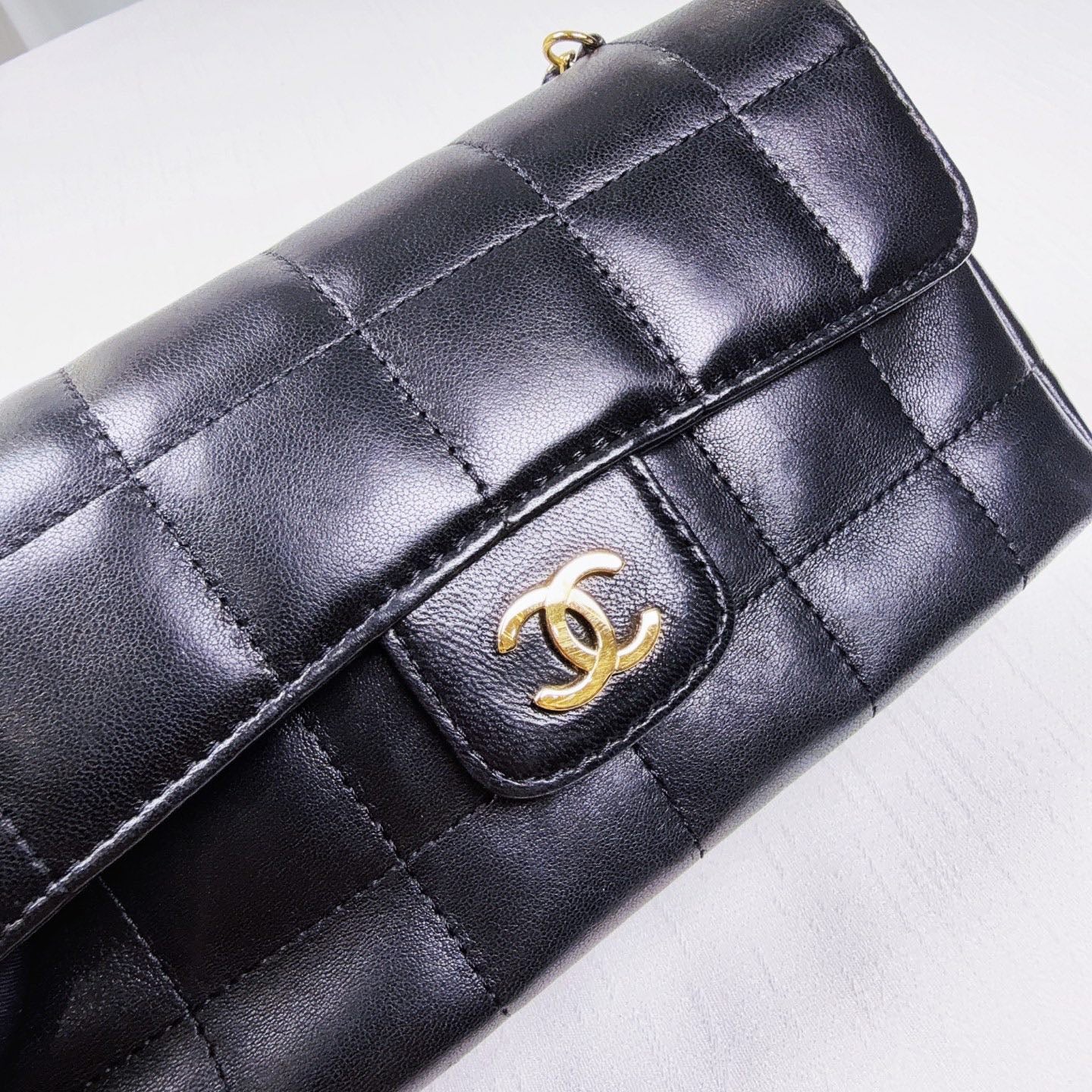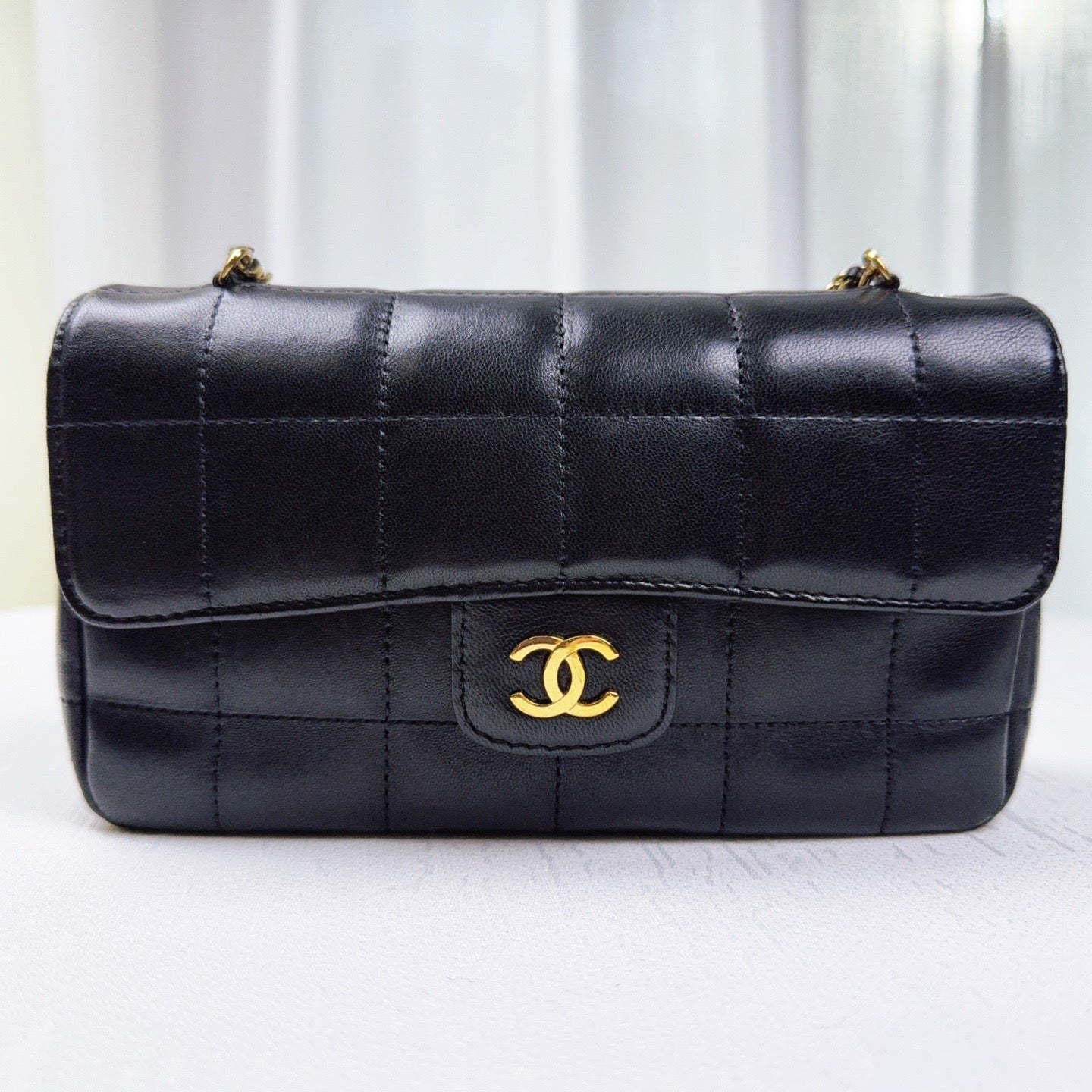 98% NEW - CHANEL Mini Ice Cube Black Lambskin with Gold Hardware 8×6×10cm