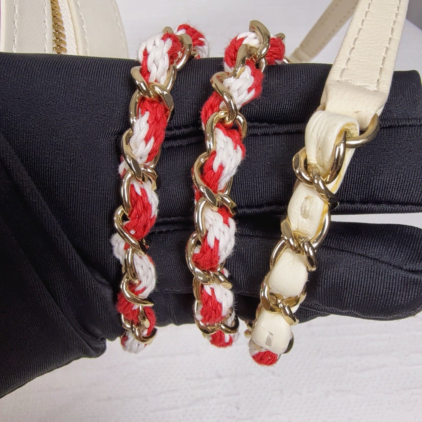 顏色 / 金屬配件: 紅白拼色 配銀色金屬配件