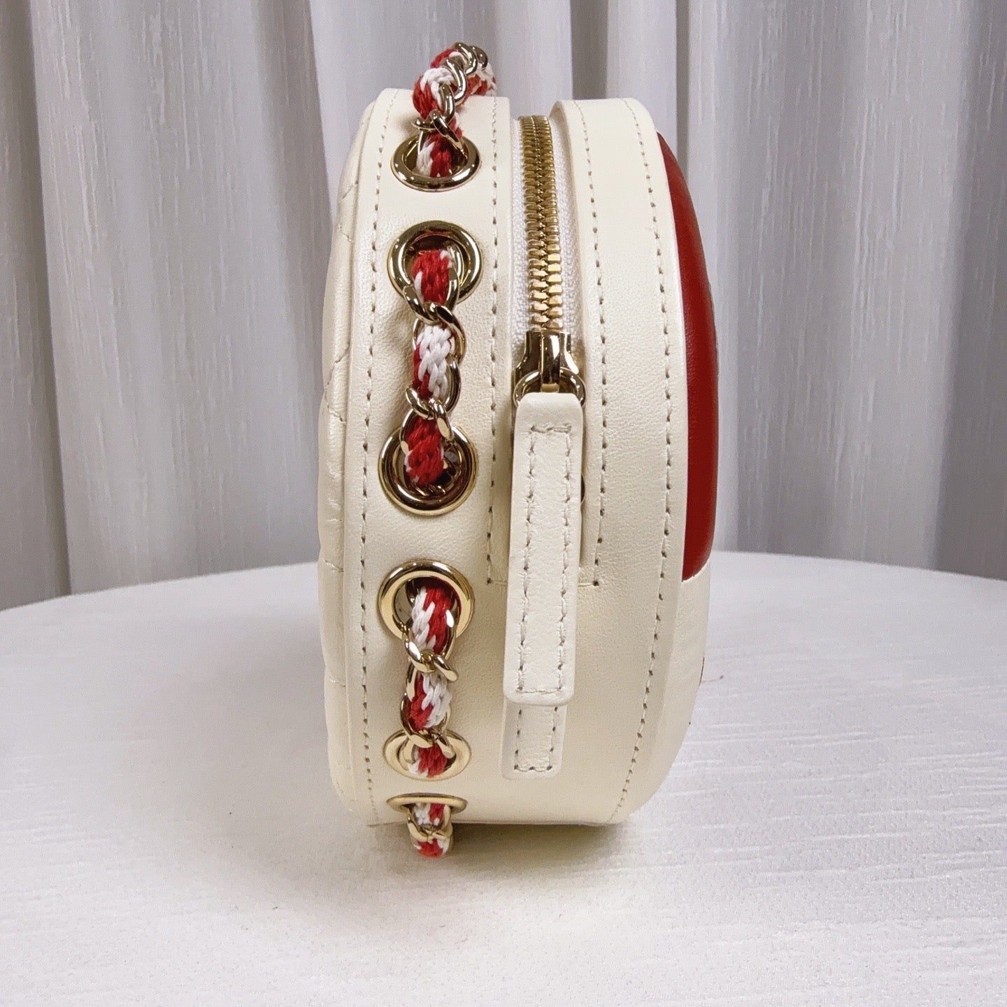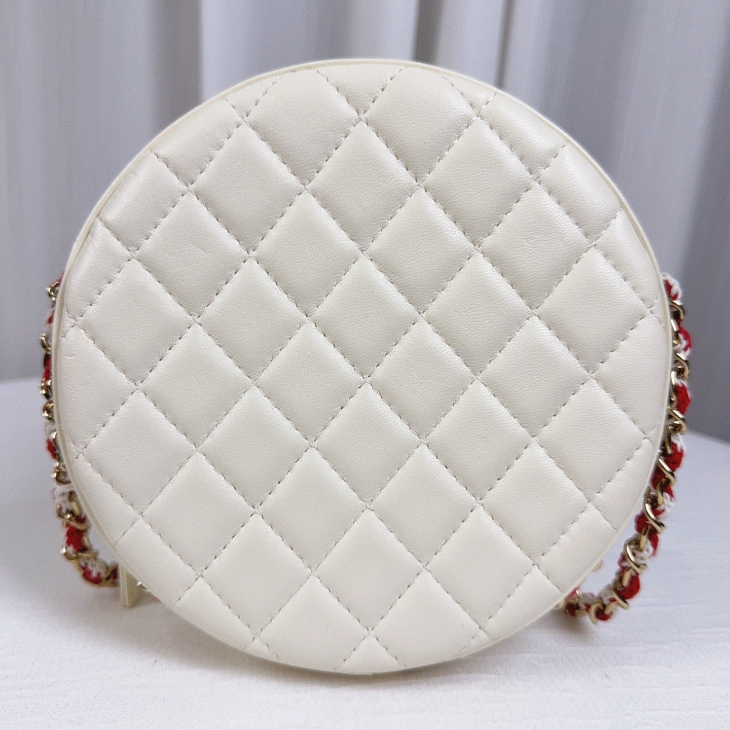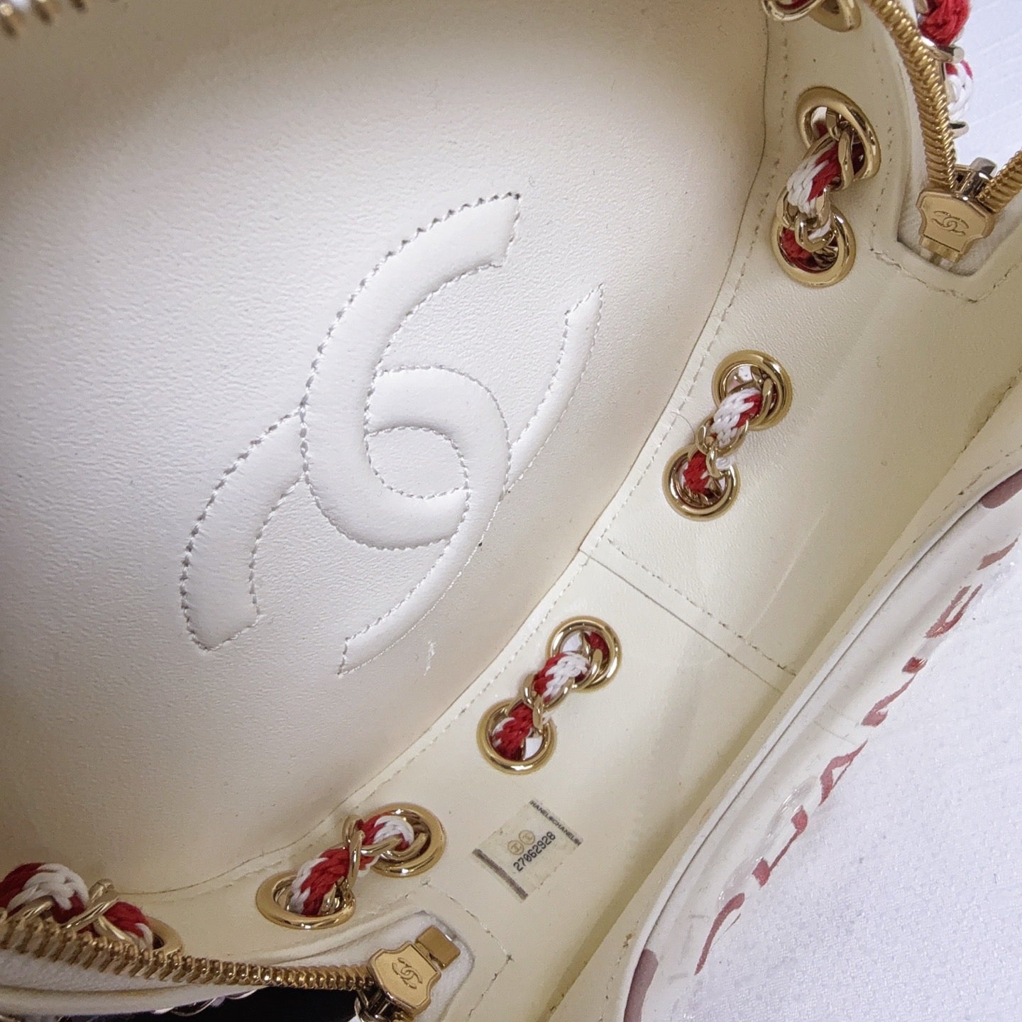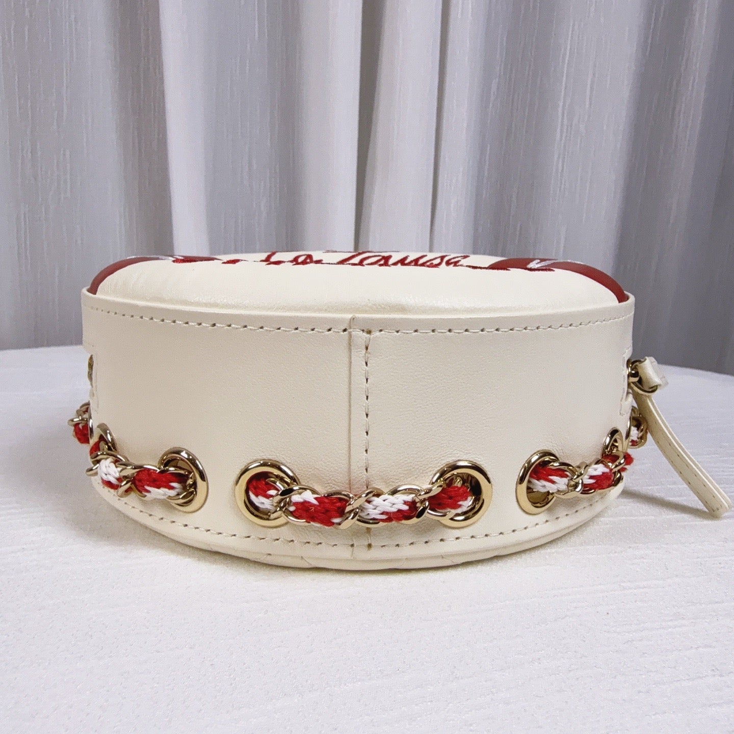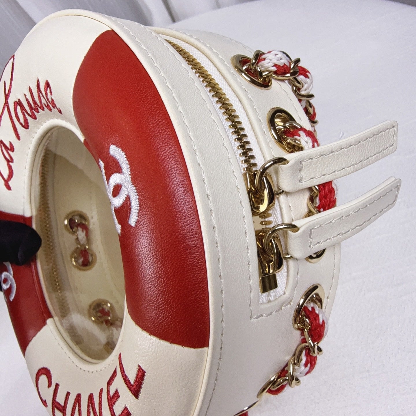 98% NEW - CHANEL Runway Red & White Embroidered PVC Lifebuoy Round Bag with Chain Strap 18 x 6 x 18 cm