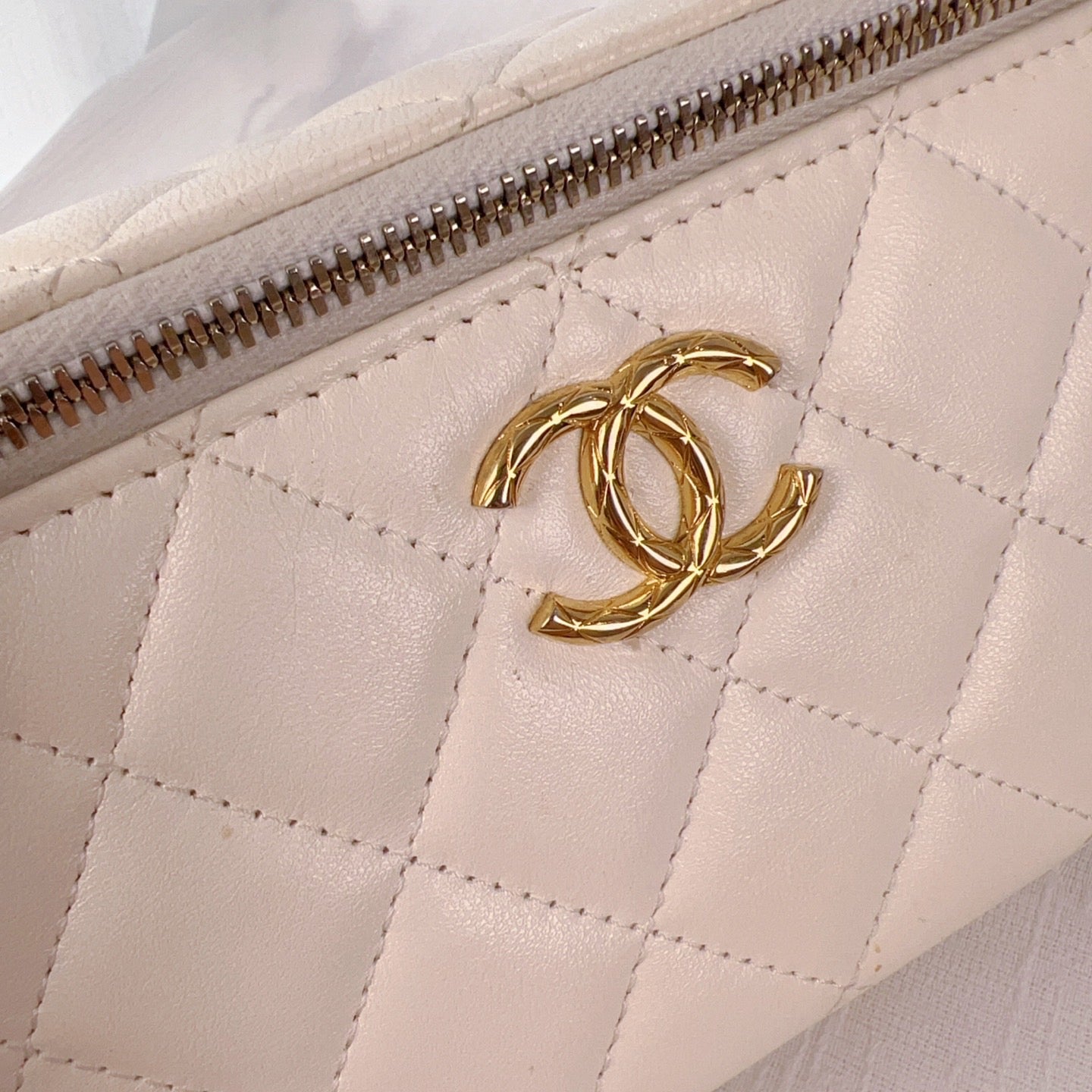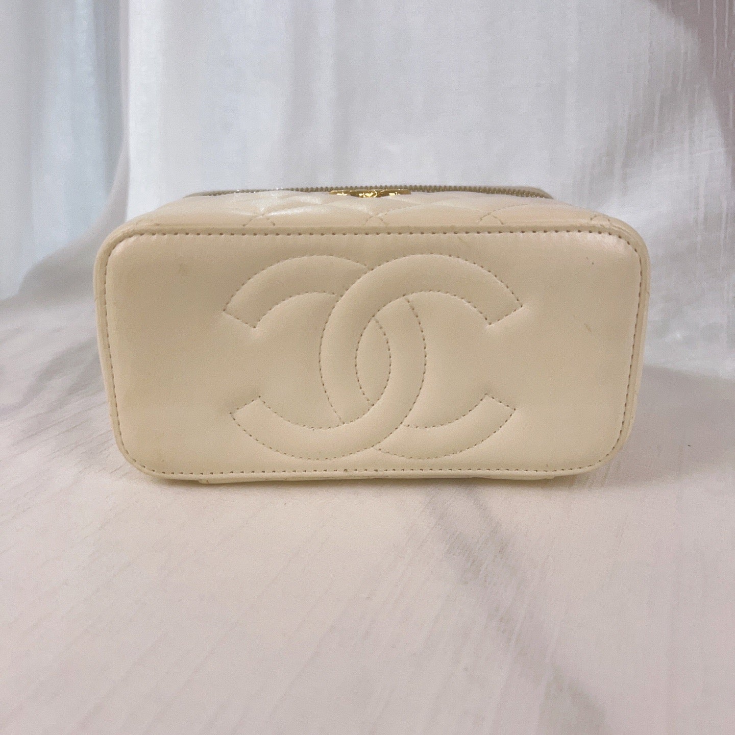 98% NEW - CHANEL White Caviar Leather CC Pineapple Clasp Quilted Vanity Case with Gold Hardware 16×9.5x8cm