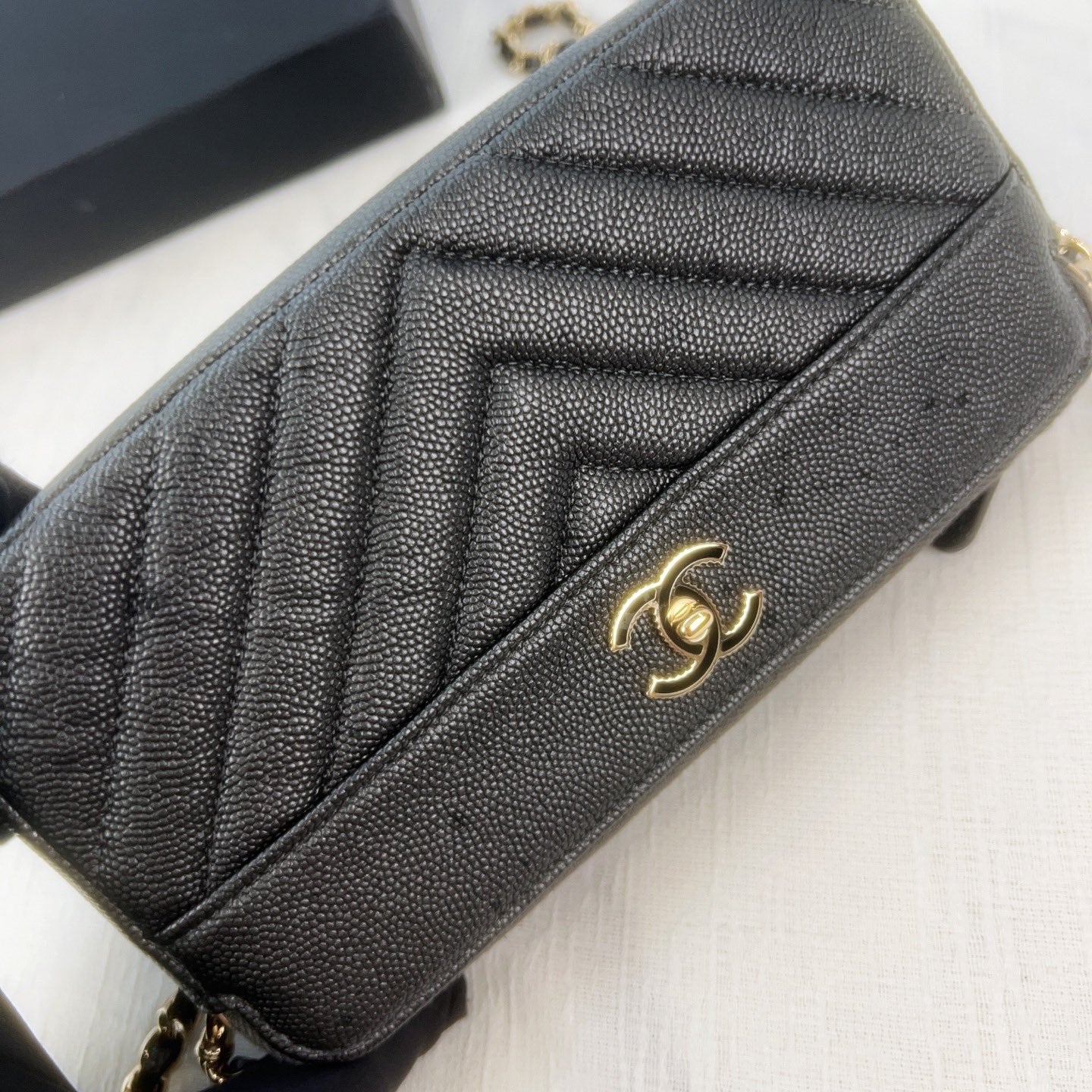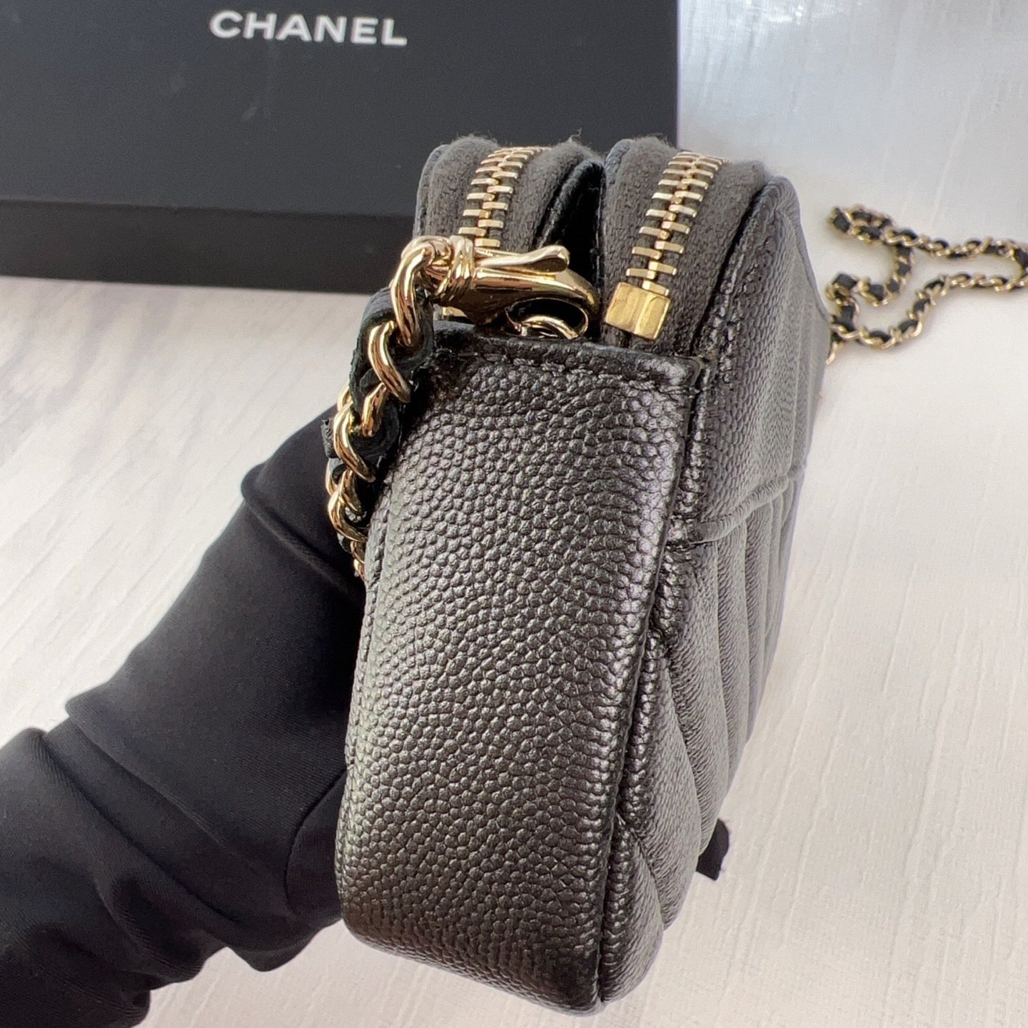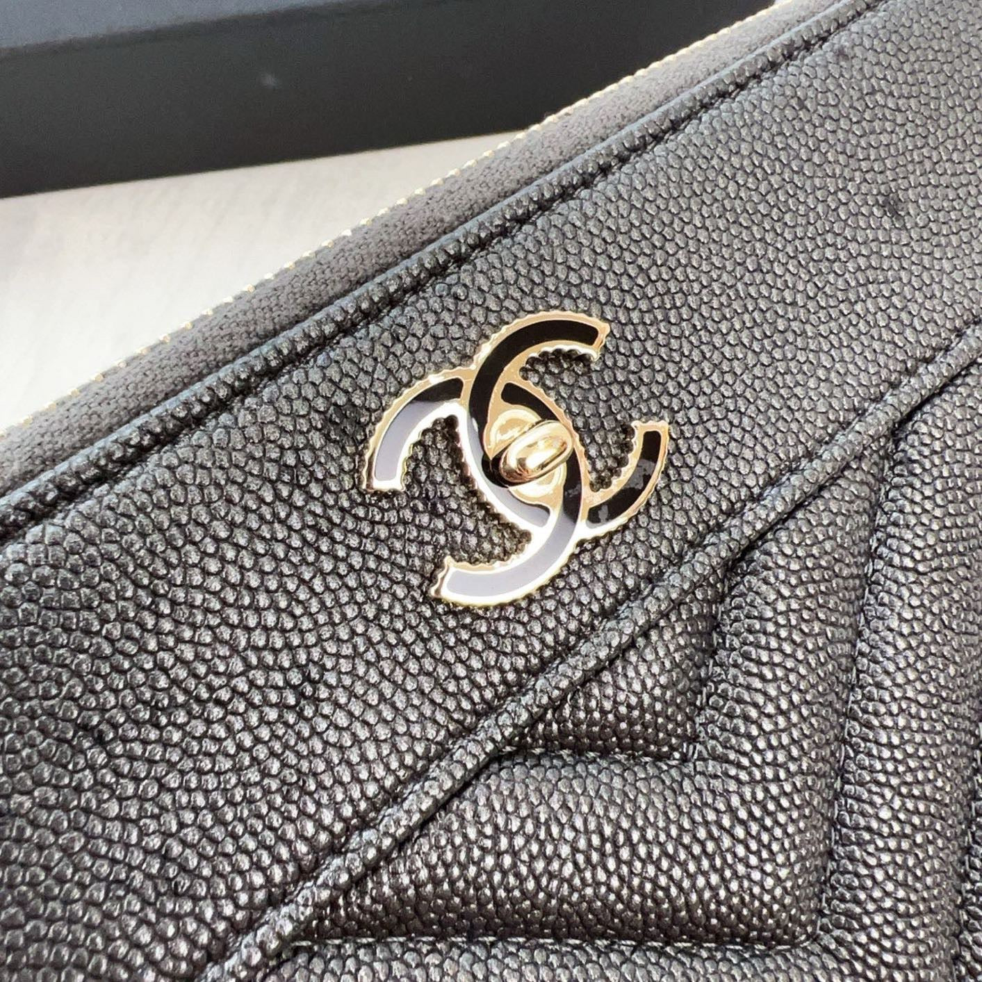 98% NEW - CHANEL WOC in Black Caviar Leather with Enamel CC Clasp and Gold Hardware 19×3×9cm
