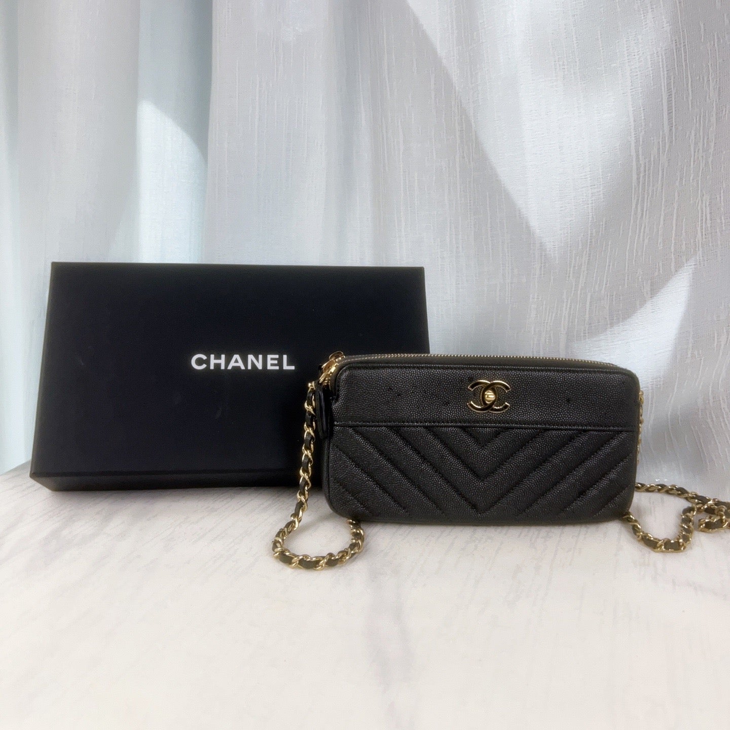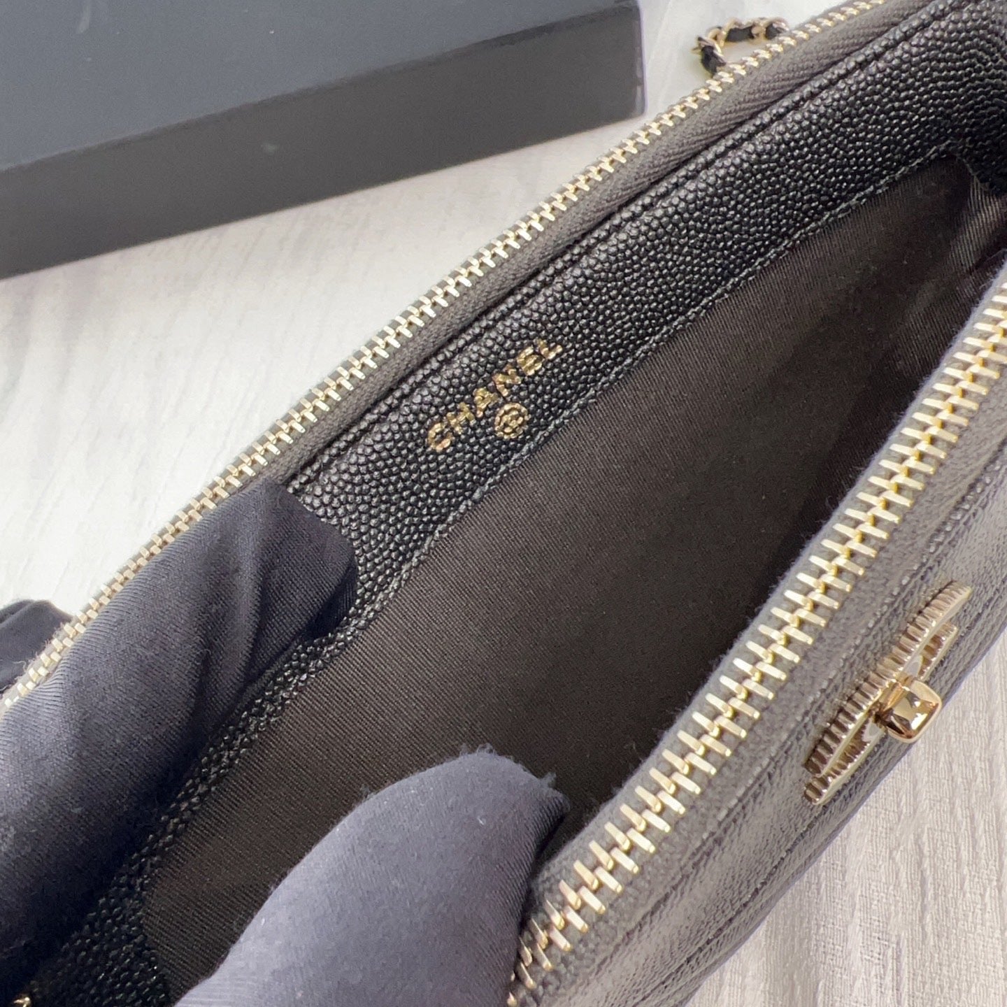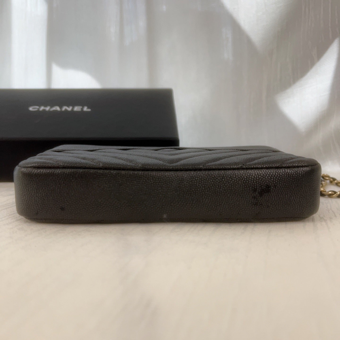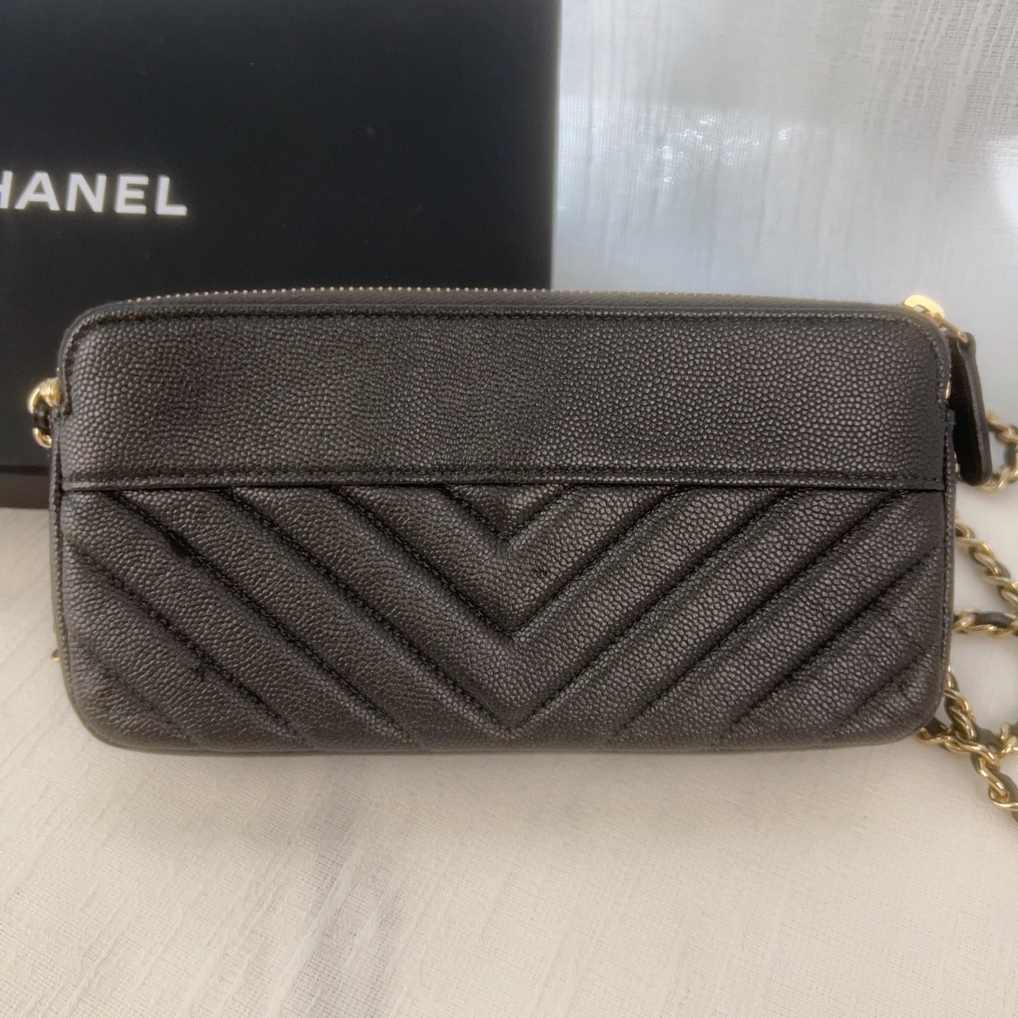 98% NEW - CHANEL WOC in Black Caviar Leather with Enamel CC Clasp and Gold Hardware 19×3×9cm